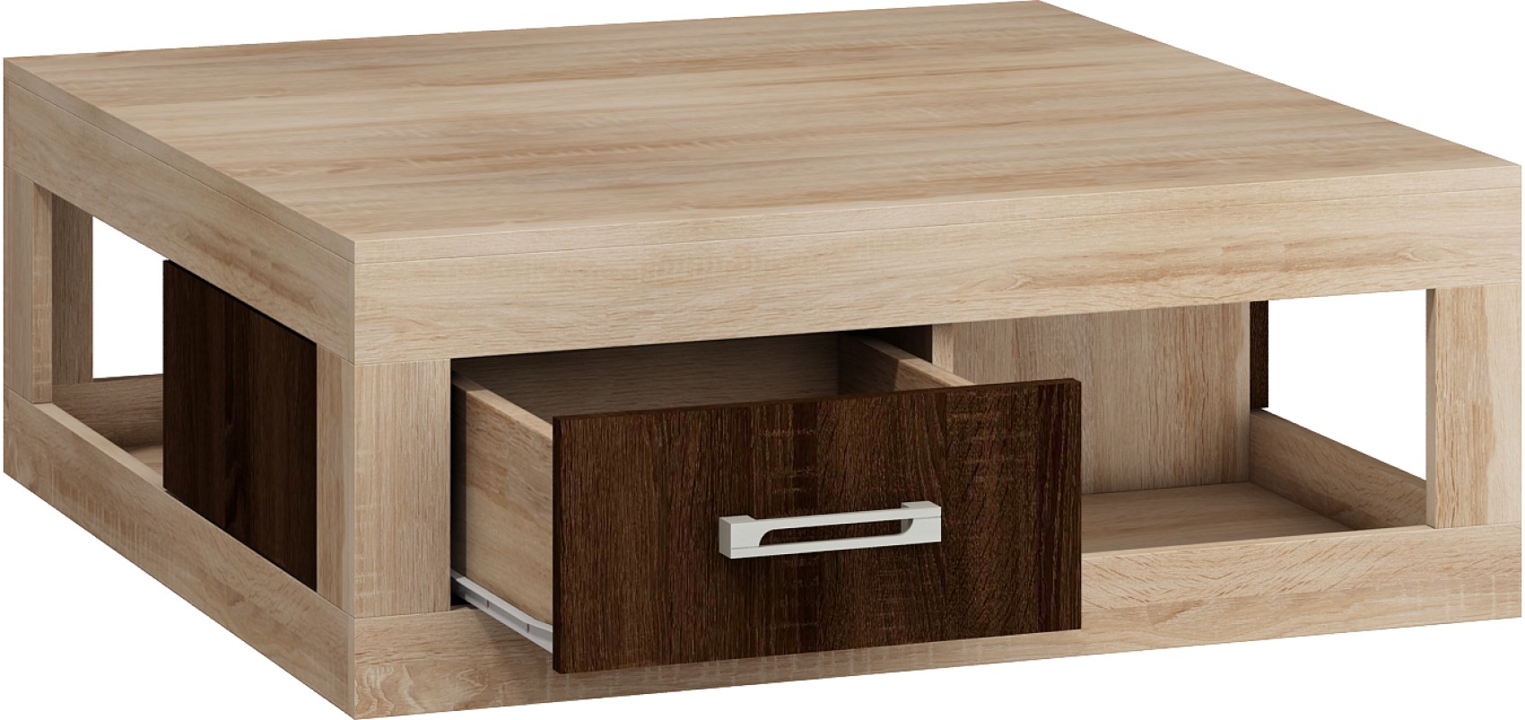 Konferenční stolek Verin 02 se skvěle hodí do moderně zařízených interiérů. Zaujme vás svým neobvyklým avšak moderním designem a přírodním provedením. Je vyroben z kvalitních lamino desek o síle 16 mm. Nabízíme vám několik barevných variant. Zajímavý design barev dodává stolku ještě více na luxusu a nadčasovosti. Jednotlivé díly jsou variabilní, lze je navzájem kombinovat a vytvořit si tak obývací sestavu podle svých představ.