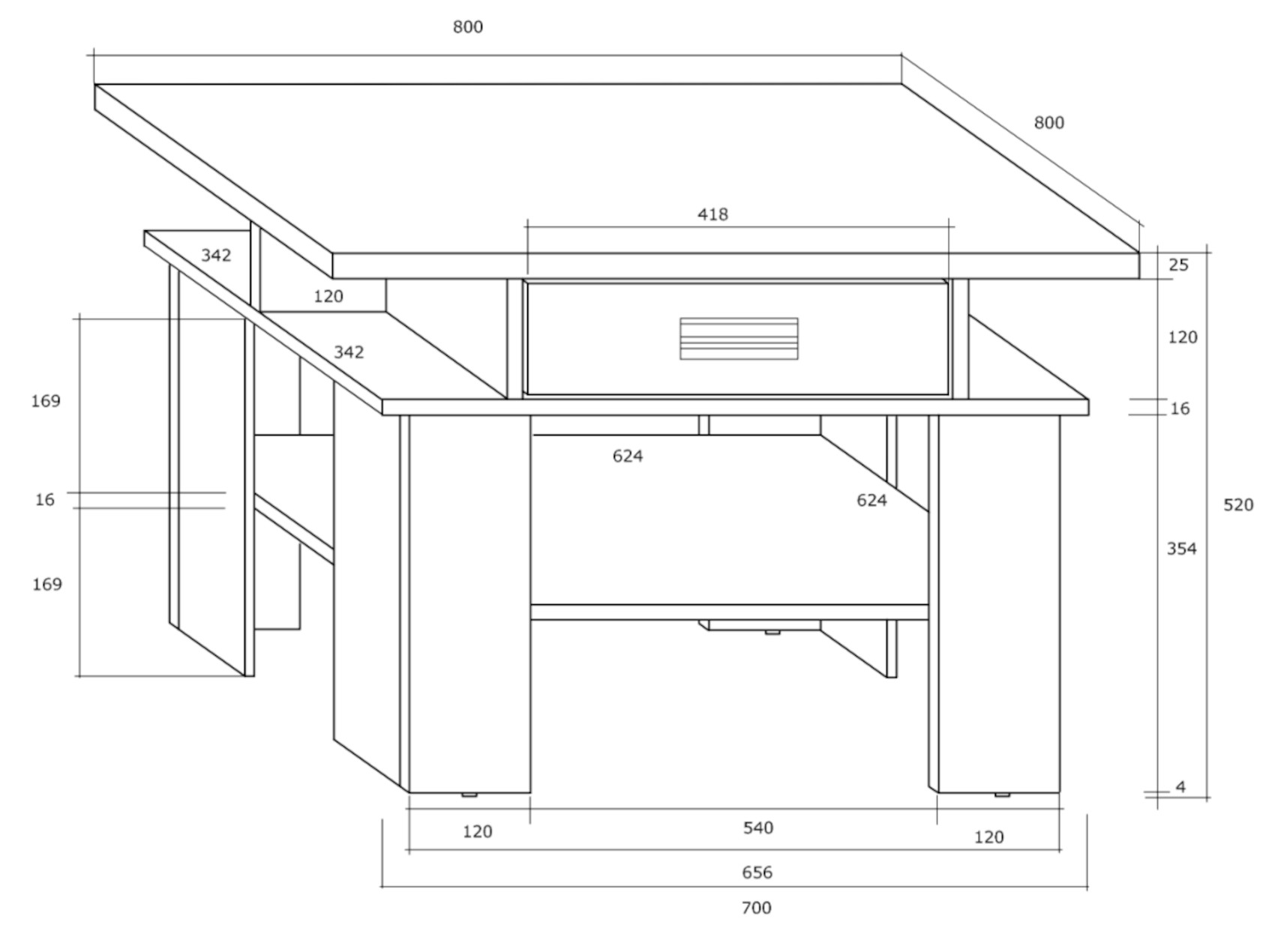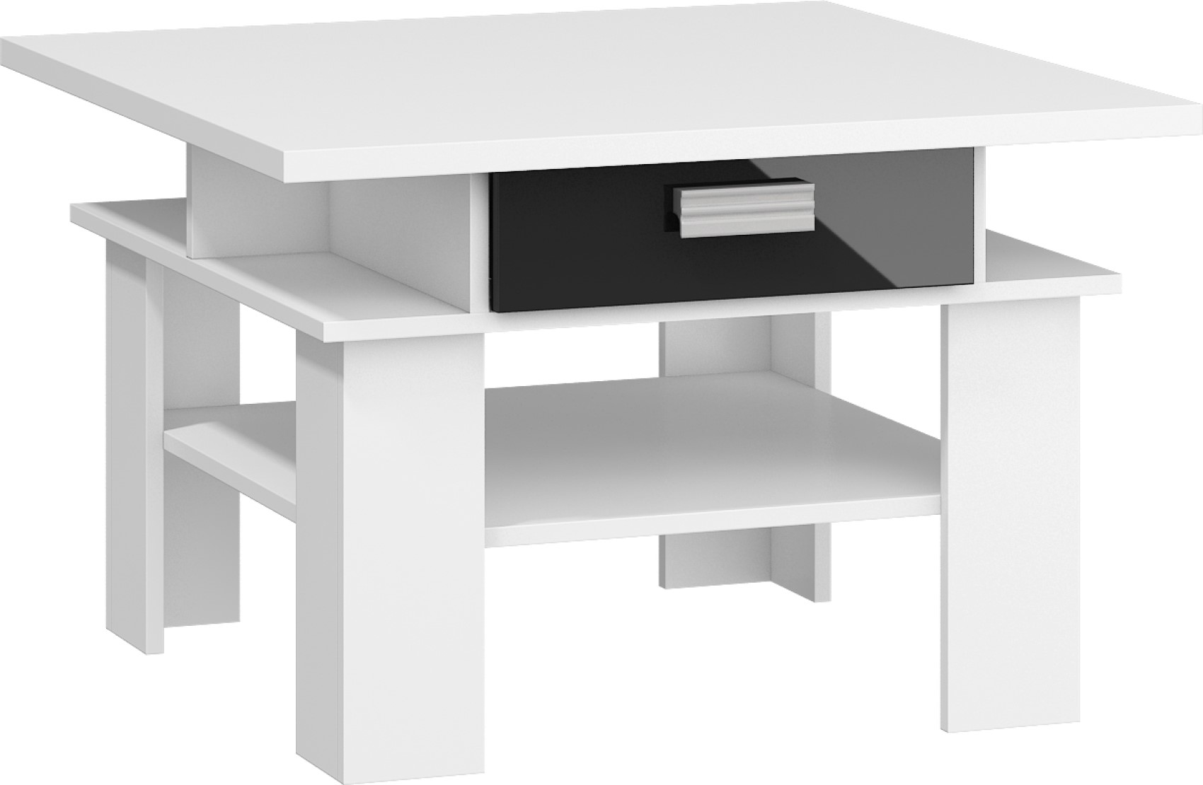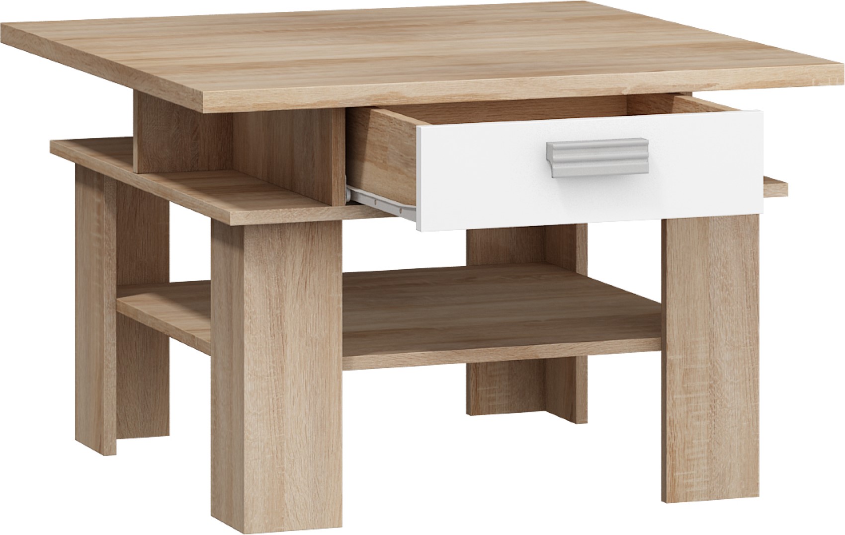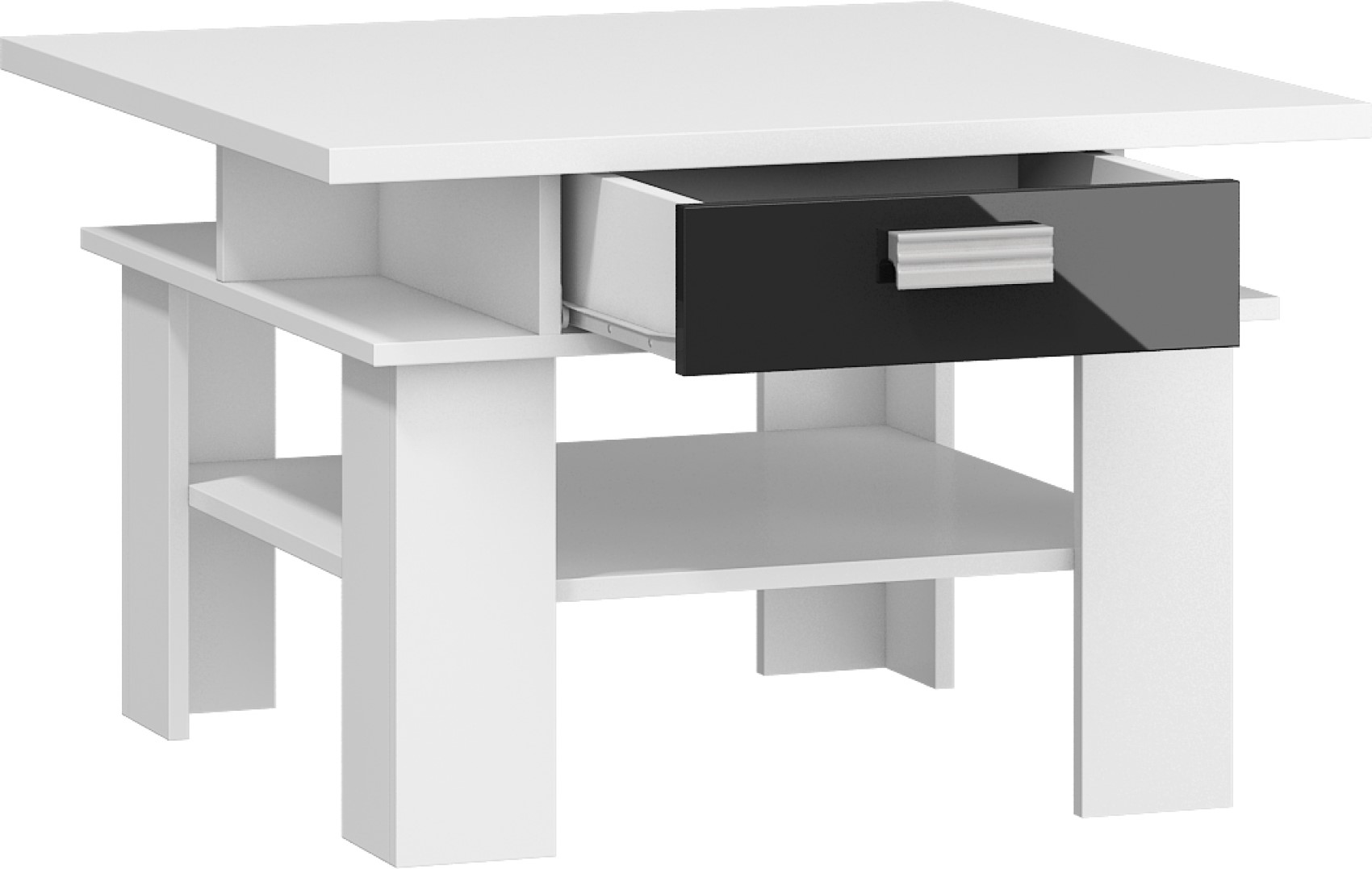 Součástí stolku jdou 2 zásuvky na kovových pojezdech. Pod zásuvkami je otevřená nika k odložení vašich různých nezbytností.