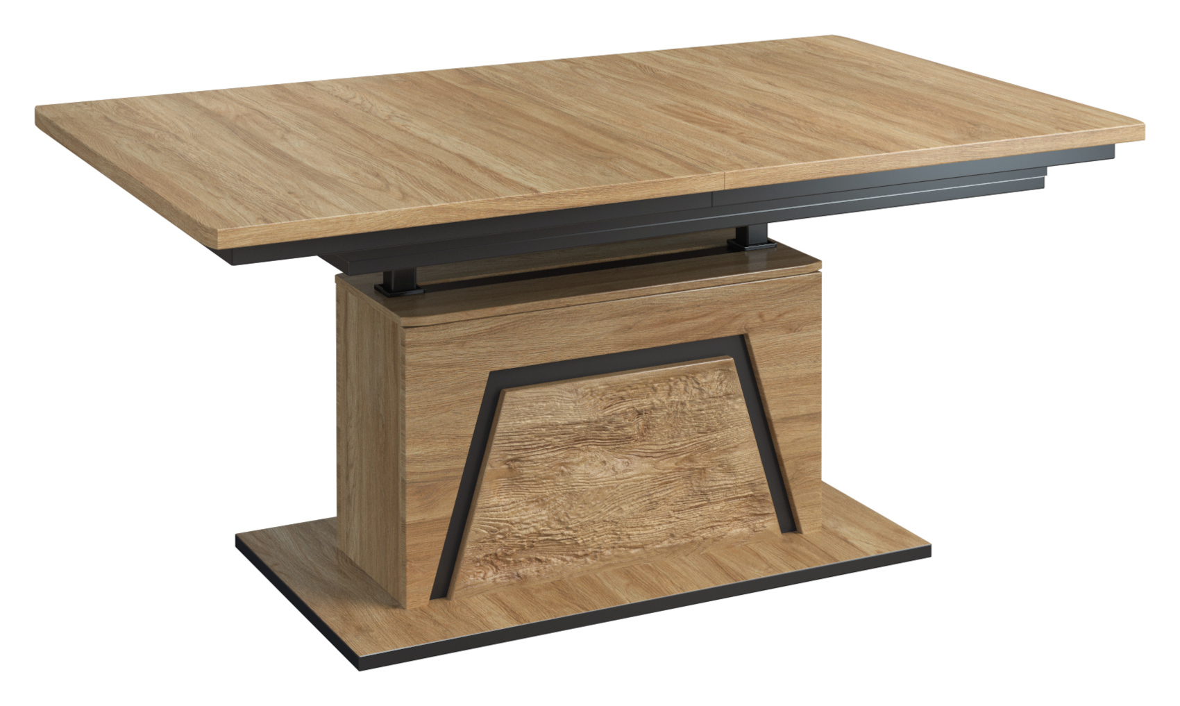 Pneumatický rozkládací stolek Pik III PK vás zaujme svým moderním a jednoduchým designem. Je vyroben z masivního dubového dřeva a přírodní dubové dýhy s černými lakovanými detaily. Kvalitní technologie lakování a moření dodává nábytku přirozený vzhled dřeva a zvýrazňuje strukturu lét.