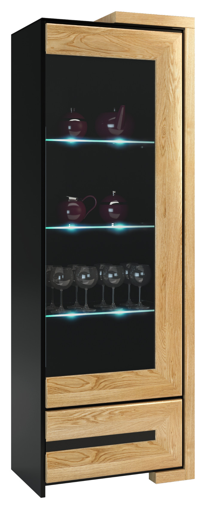 - Vitrína Corino 1DS1SZ (2ks - P+L)*: šířka 68 cm, hloubka 42 cm, výška 193 cm