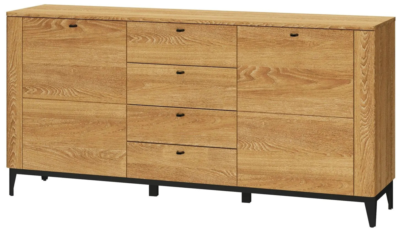 Obývací pokoj Porto vás zaujme svým přírodním designem s viditelnou strukturou dřevěných lét. Nábytek je vyroben z masivního dubového dřeva a přírodní dubové dýhy zaručující kvalitu a odolnost. Součástí jsou kovové úchyty a nožky v odstínu černý mat, které dodají nádech elegance a provzdušní váš celkový prostor. Dvířka a zásuvky v celém systému mají zabudovaný systém tichého dovírání.