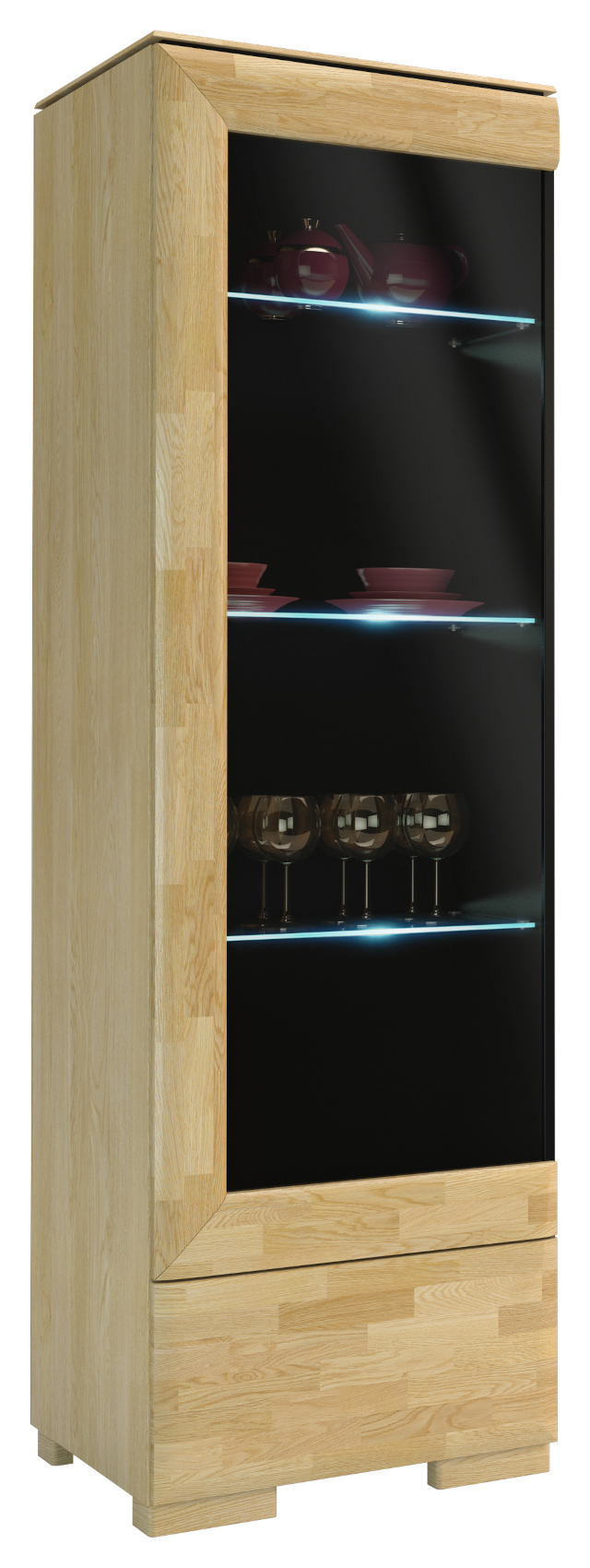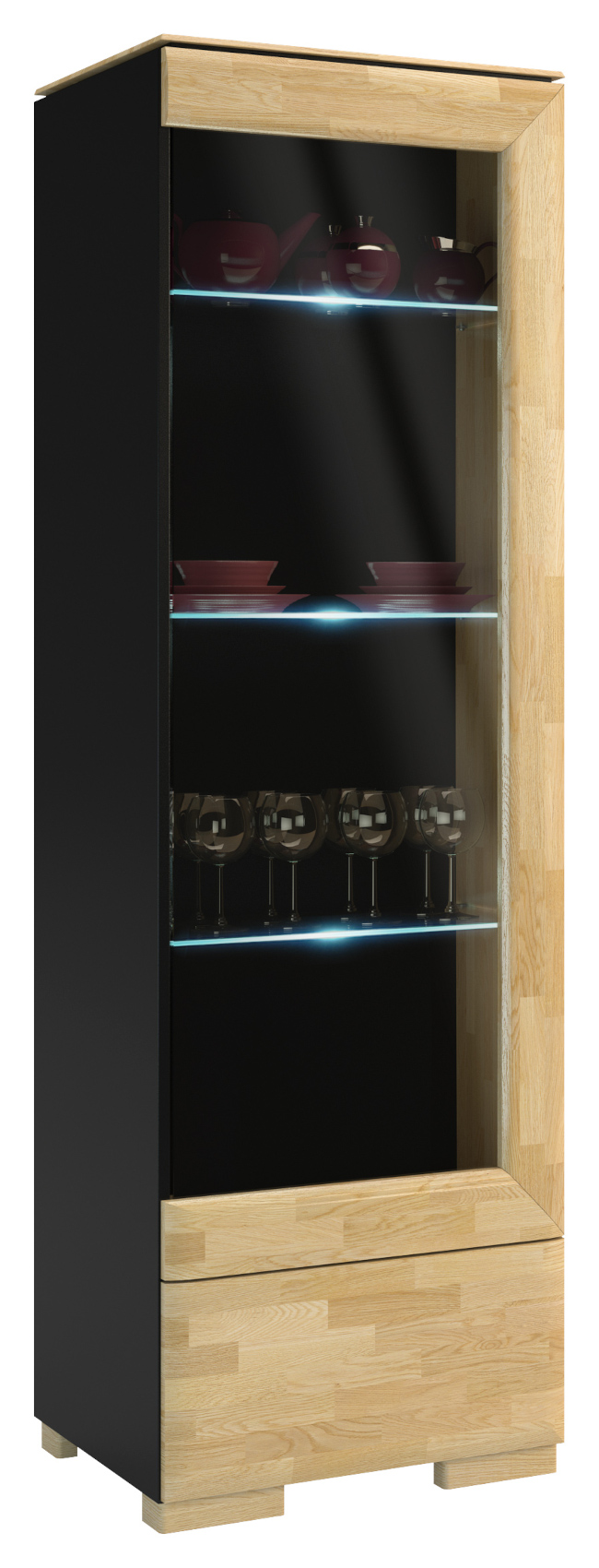 - Vitrína Rossano 1DS1D s osvětlením**: šířka 61 cm, hloubka 43 cm, výška 192 cm