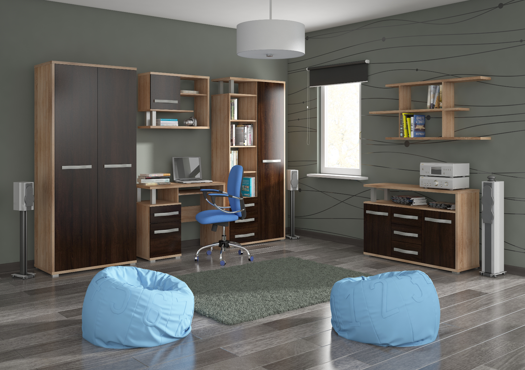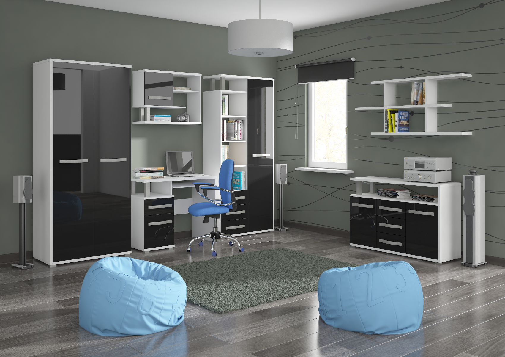 Kolekce Angel nabízí inspirativní výběr komponentů, které nesmí chybět v žádném moderním interiéru. Jednotlivé díly jsou variabilní, takže je můžete navzájem kombinovat a vytvořit si tak obývací sestavu podle vlastních představ. Nábytek je vyroben z kvalitních lamino desek o síle 25 mm a 16 mm. Nábytek stojí na nízkých kovových nožkách. Nabízíme vám několik barevných variant. Zajímavý design barev dodává skříni ještě více na luxusu a nadčasovosti.