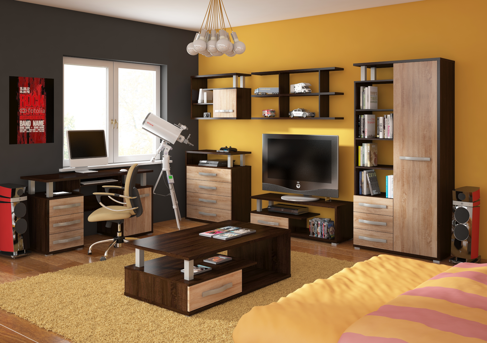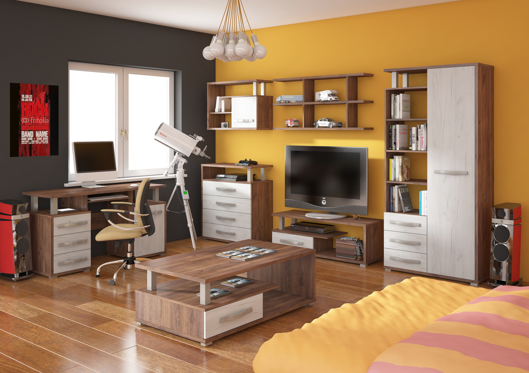 Kolekce Angel nabízí inspirativní výběr komponentů, které nesmí chybět v žádném moderním interiéru. Jednotlivé díly jsou variabilní, takže je můžete navzájem kombinovat a vytvořit si tak obývací sestavu podle vlastních představ. Nábytek je vyroben z kvalitních lamino desek o síle 25 mm a 16 mm. Nábytek stojí na nízkých kovových nožkách. Nabízíme vám několik barevných variant. Zajímavý design barev dodává skříni ještě více na luxusu a nadčasovosti.