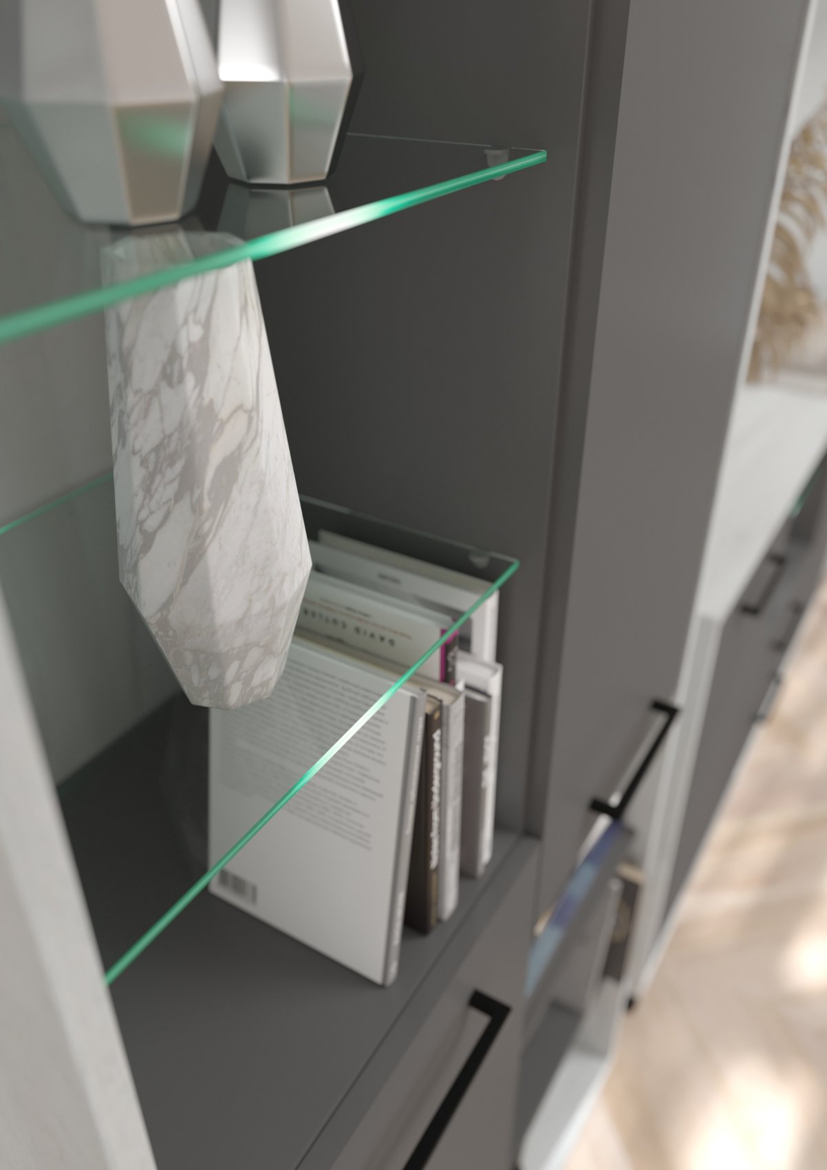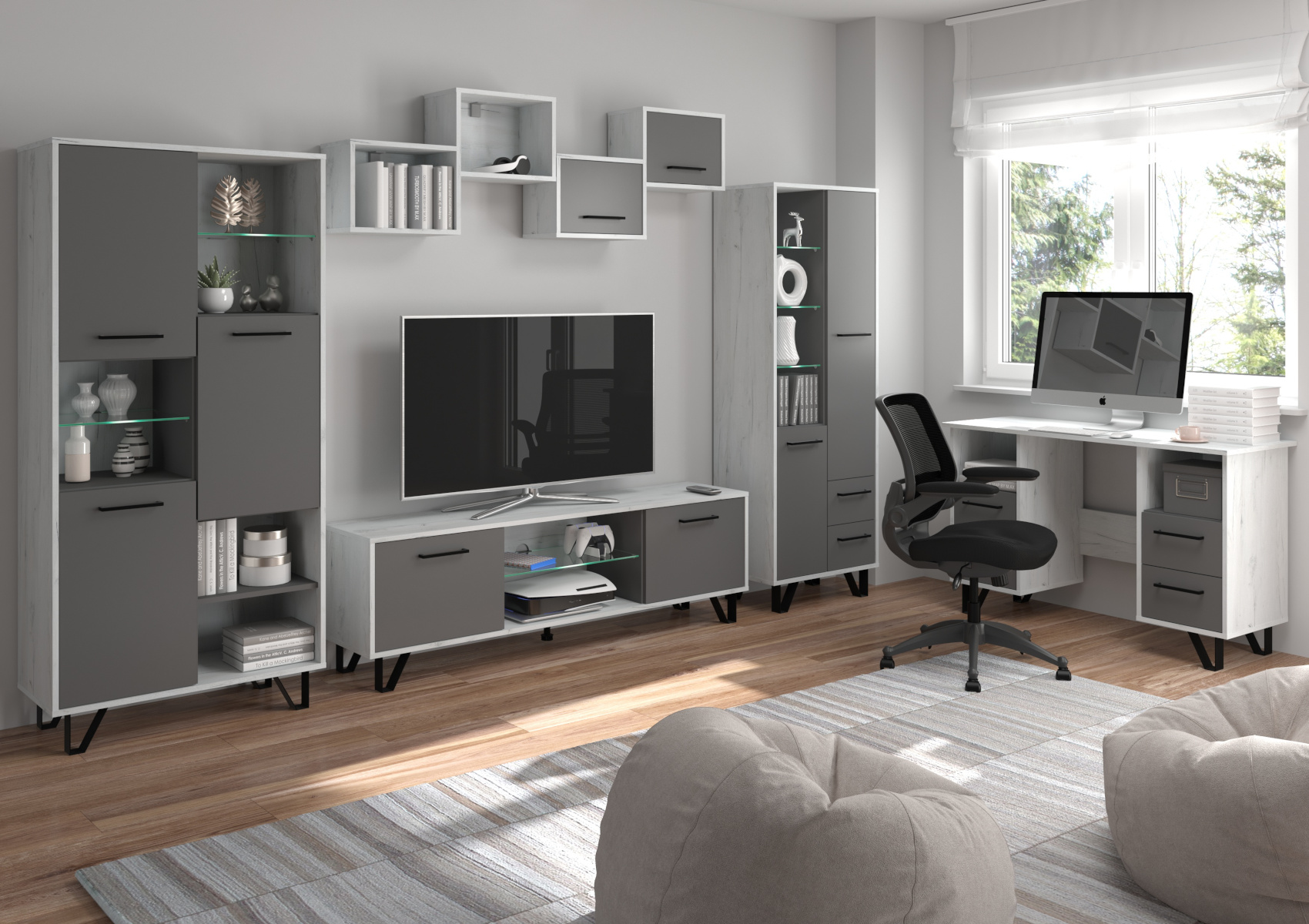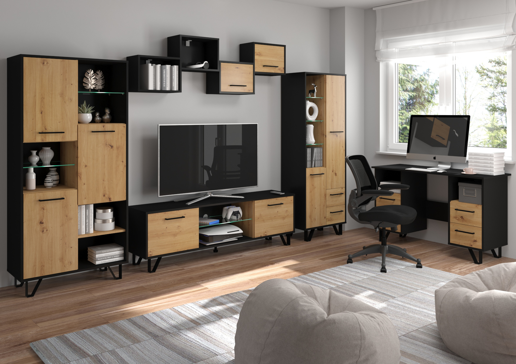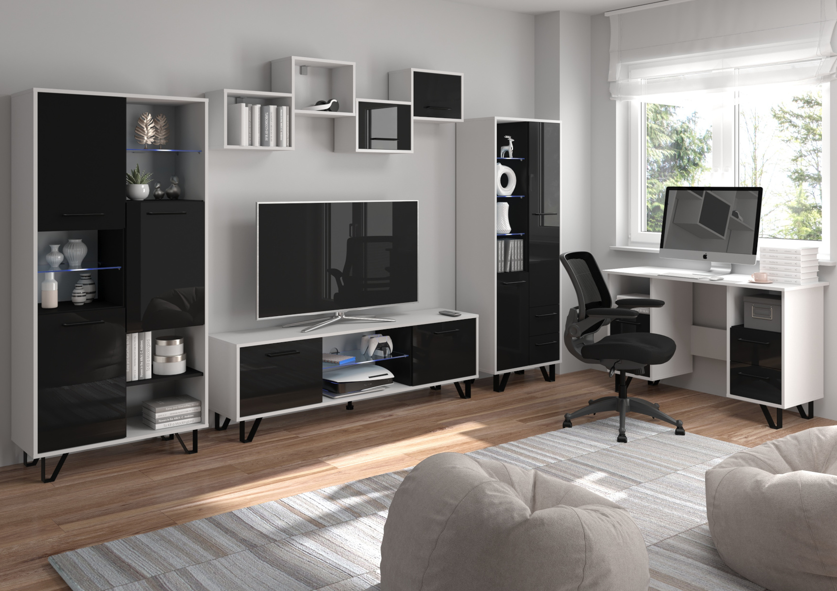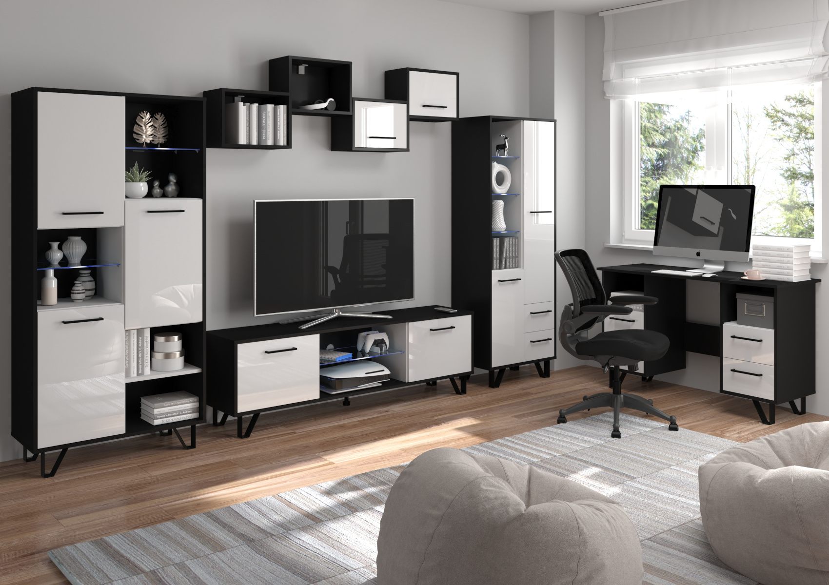Obývací stěna je sestavena z jednotlivých komodit systému Boss, ze kterých si vytvoříte svůj vysněný obývací pokoj, studentský pokoj, relaxační místnost či pracovnu.
