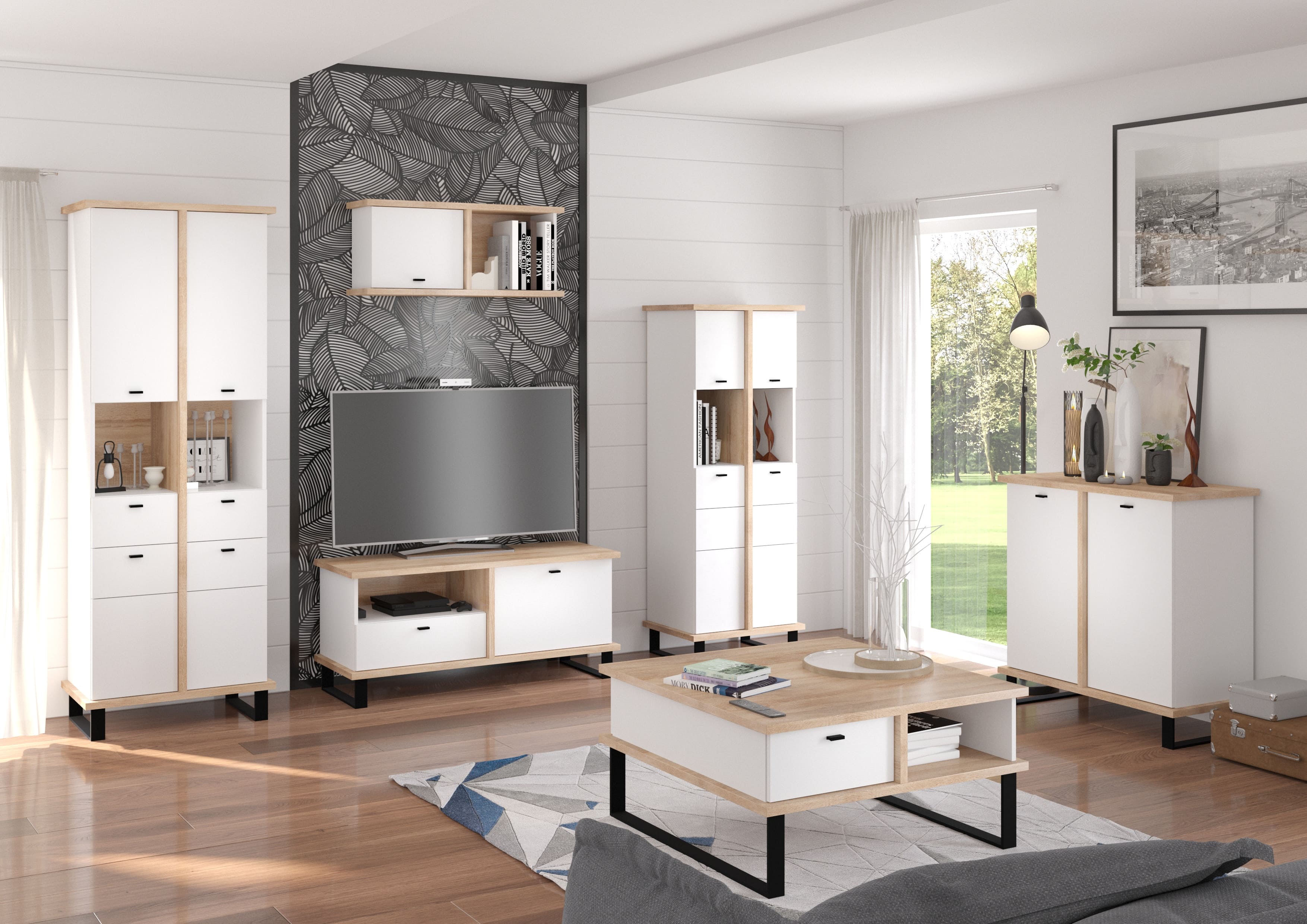 Stěnu vám dodáme v demontu. Jednotlivé části sestavy si můžete také objednat samostatně, či je zkombinovat s jinými prvky kolekcí Cross a vytvořit si tak obývák podle svých představ.