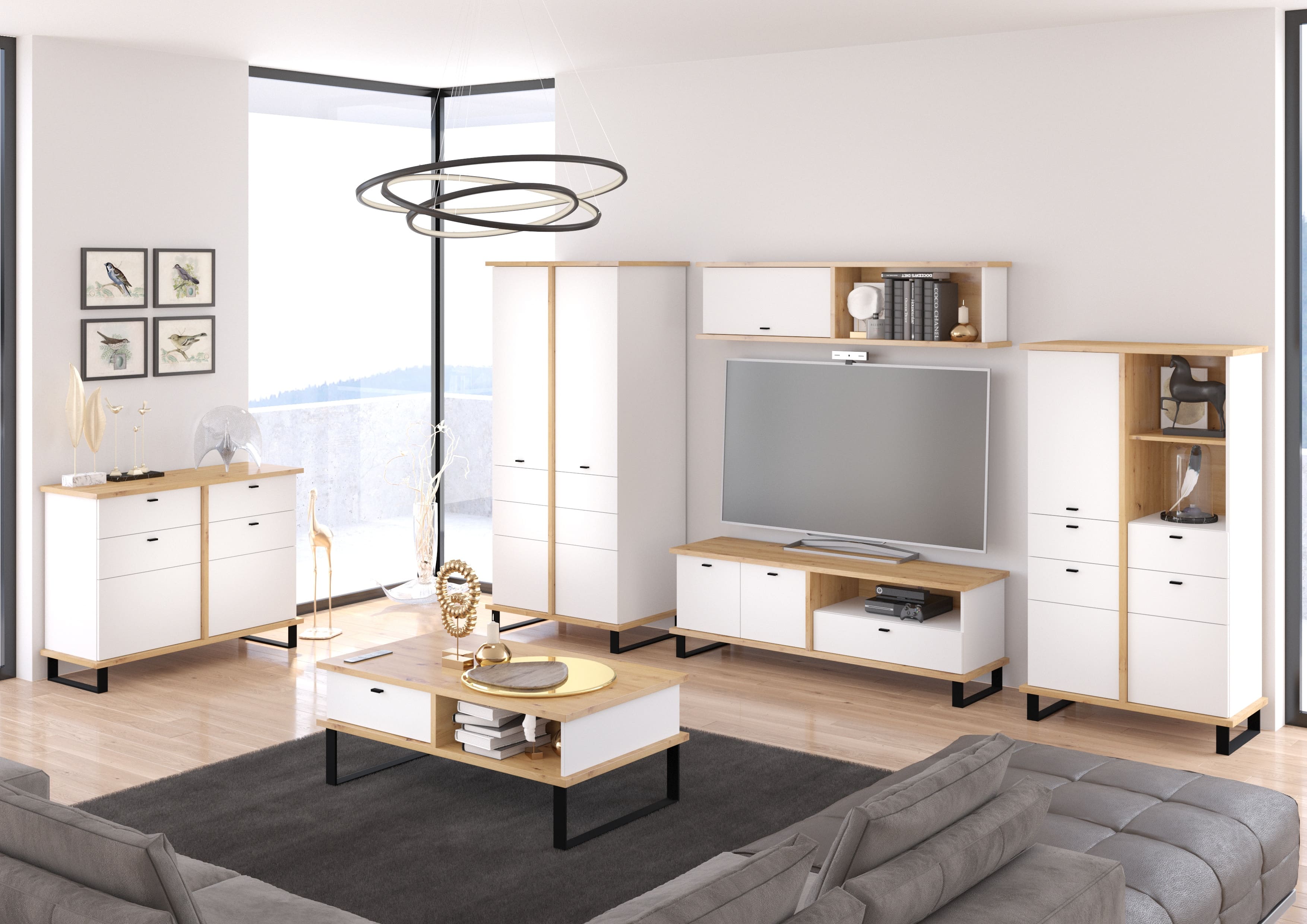 Stěnu vám dodáme v demontu. Jednotlivé části sestavy si můžete také objednat samostatně, či je zkombinovat s jinými prvky kolekcí Cross a vytvořit si tak obývák podle svých představ.