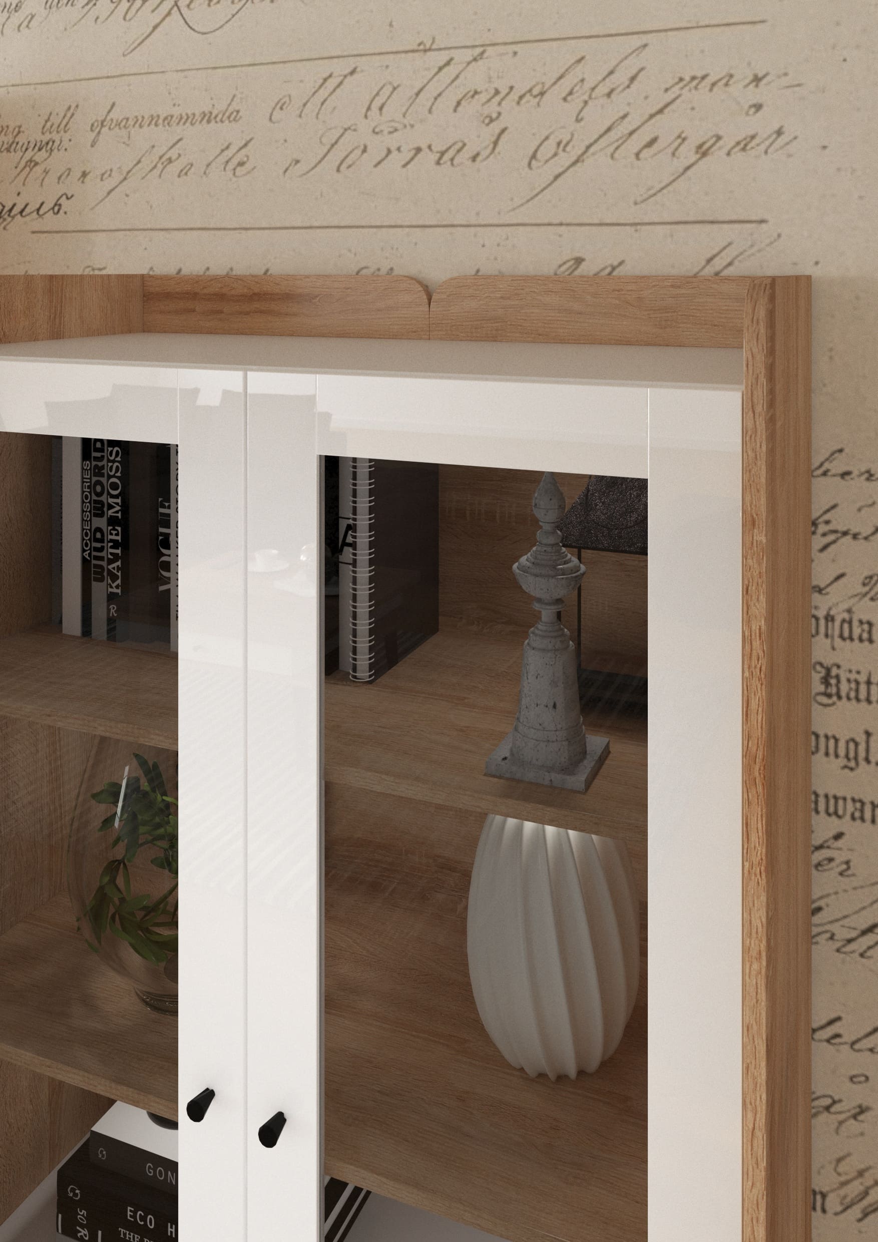 Výrazným prvkem jsou černé dřevěné nožky různých výšek, které dodají celé kolekci originální vzhled. A nejen to, vyšší nožky jsou také praktické při uklízení. Vitríny jsou vybavené kouřovými skly, které ještě více zdůrazní originální vzhled systému. Černou barvu mají i úchyty a spolu s bílým leskem na předních plochách skvěle doplňují dřevodekory reflektující moderní trendy v bydlení. S kolekcí Dolce nemůžete šlápnout vedle!