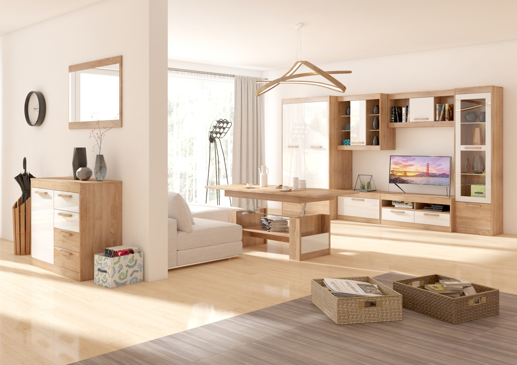 Můžete si k ní také dokoupit také komodu 1D4S Maximus, zrcadlo 100 Maximus a konferenční stolek R Maximus, který se ve společné místnosti nikdy neztratí, díky možnosti rozložitelnosti stolku do šířky a zvednutí stolku do výšky tak, že Vám vznikne zbrusu nový jídelní stůl, na kterém se pohodlně najíte v pohodlí vašeho obývacího pokoje.
