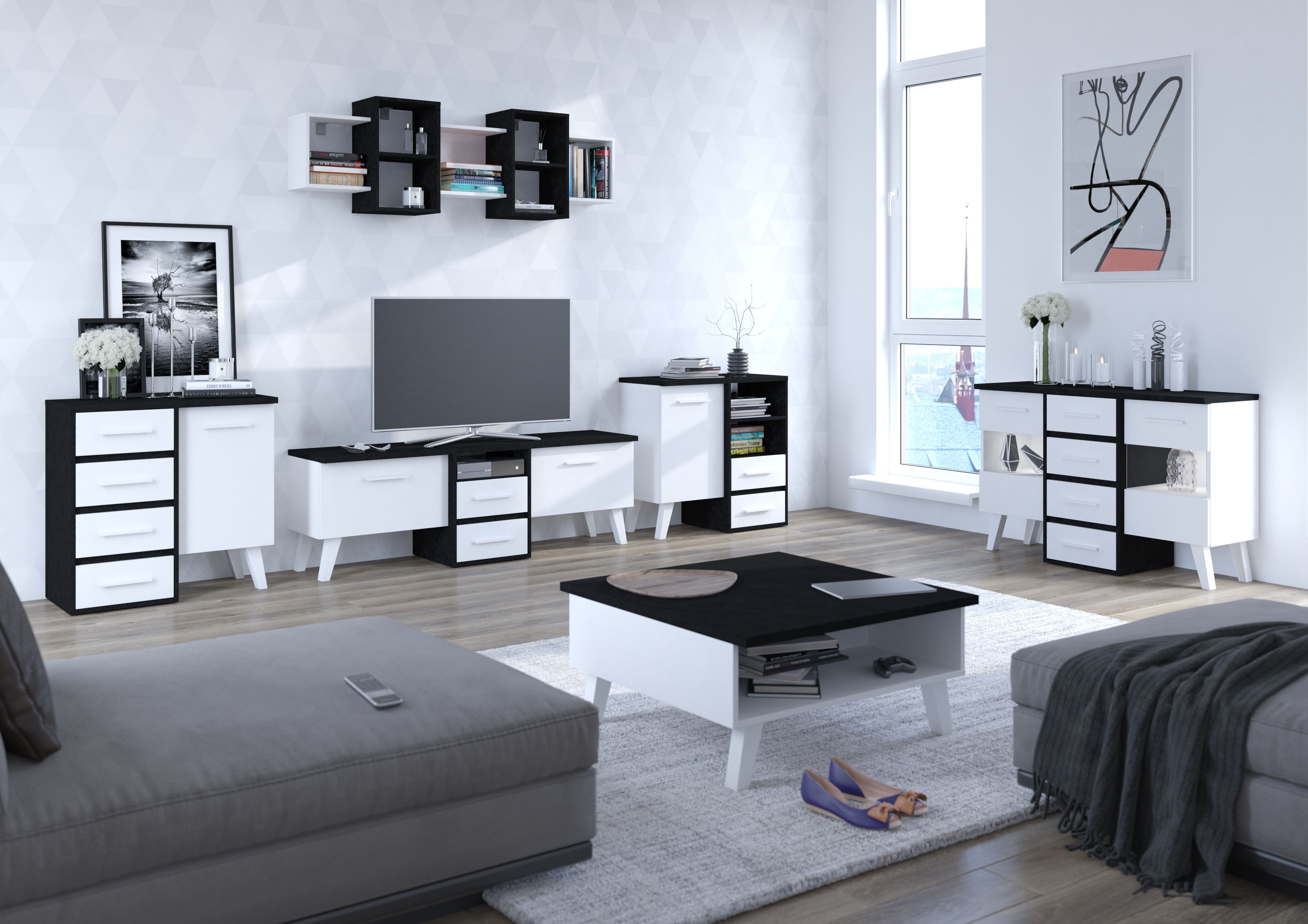 Části sestavy si můžete objednat také samostatně, či je zkombinovat s jinými prvky kolekce a vytvořit si tak obývák podle svých představ.