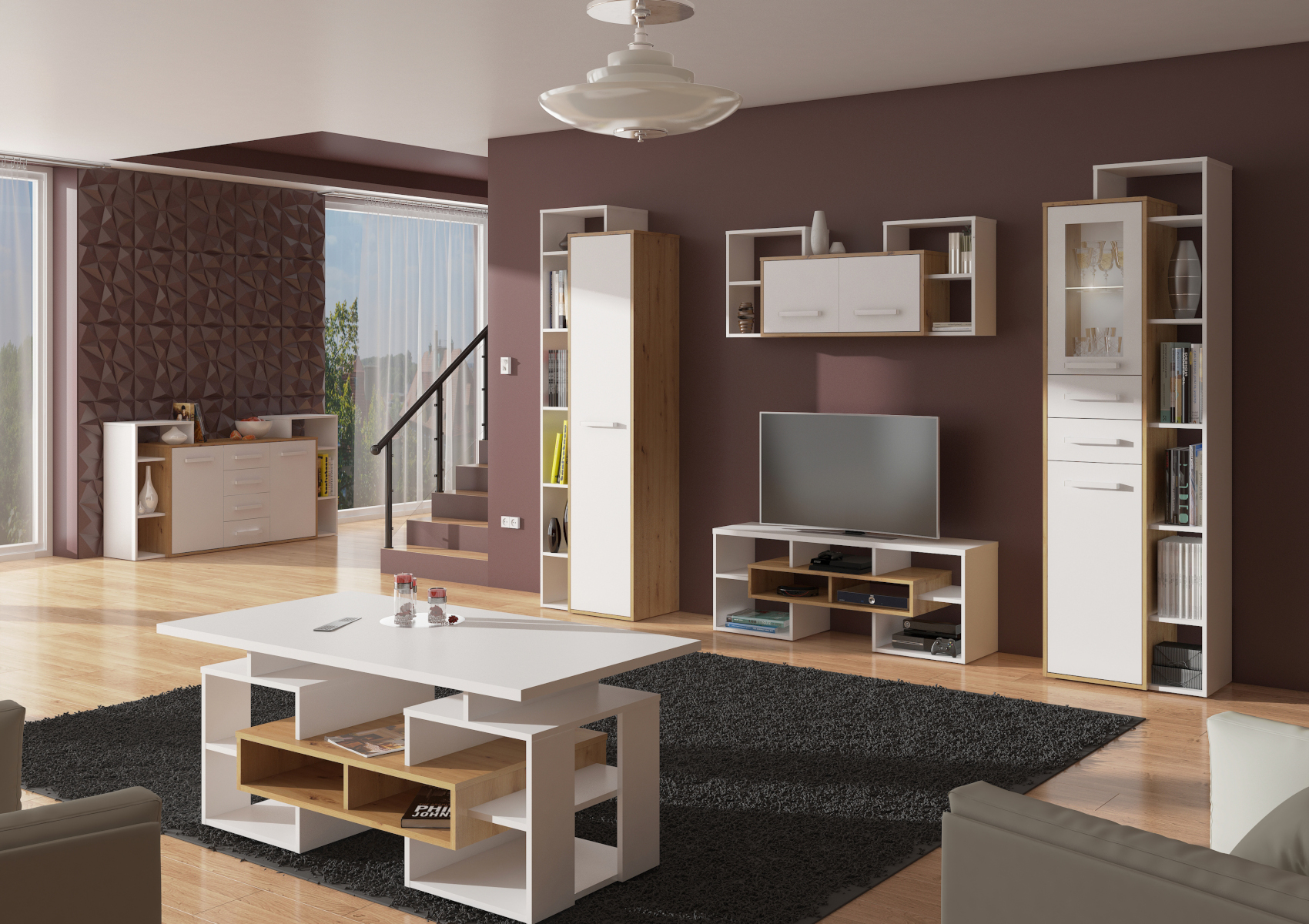 Obývací stěna Rio 3 se hodí zejména do moderně zařízených interiérů. Díky LTD materiálu, který je při výrobě použit, vyniká celá kolekce špičkovou kvalitou. Stěnu si můžete vybrat z několika barevných variant. Zajímavý design barev dodává stěně ještě více na luxusu a nadčasovosti. Navíc v naší nabídce můžete najít další variaty obývacích stěn z kolekce Rio, což je obrovskou výhodou při vytváření Vašeho vysněného obývacího pokoje.