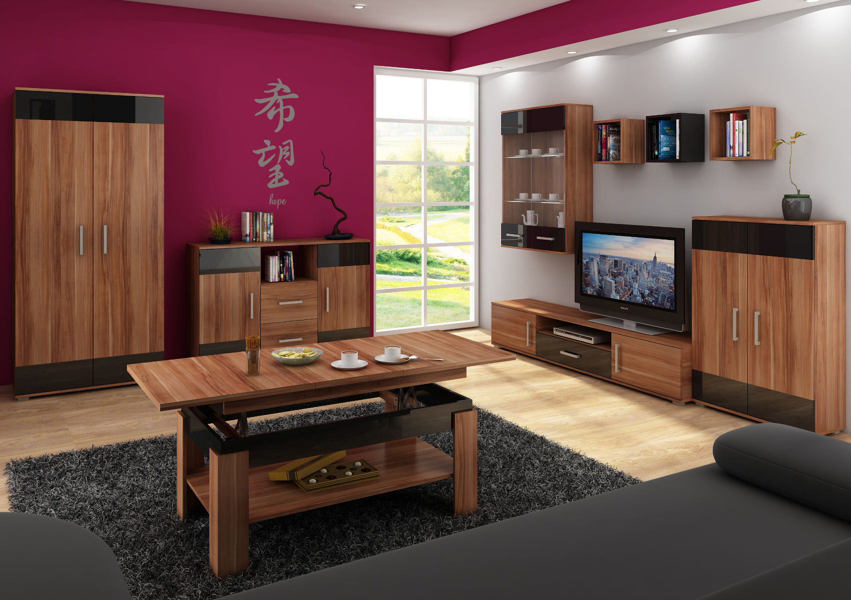 K obývací stěně si můžete dokoupit konferenční stolek Boston, komodu Solar 01, skříň Solar 05 a LED osvětlení (v případě volby LED osvětlení nás kontaktuje).