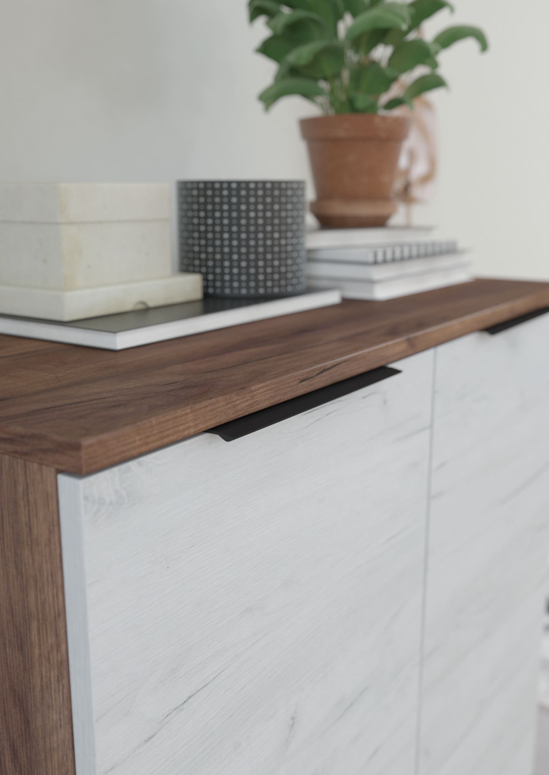 Výrazným prvkem jsou černé 18 cm vysoké dřevěné nožky, které dodají celé kolekci originální vzhled. A nejen to, vysoké nožky jsou také praktické při uklízení. Černou barvu mají i úchyty, jež doplňují barevné kombinace reflektující moderní trendy v bydlení. Vybavte si svůj obývák kolekcí SVEN!