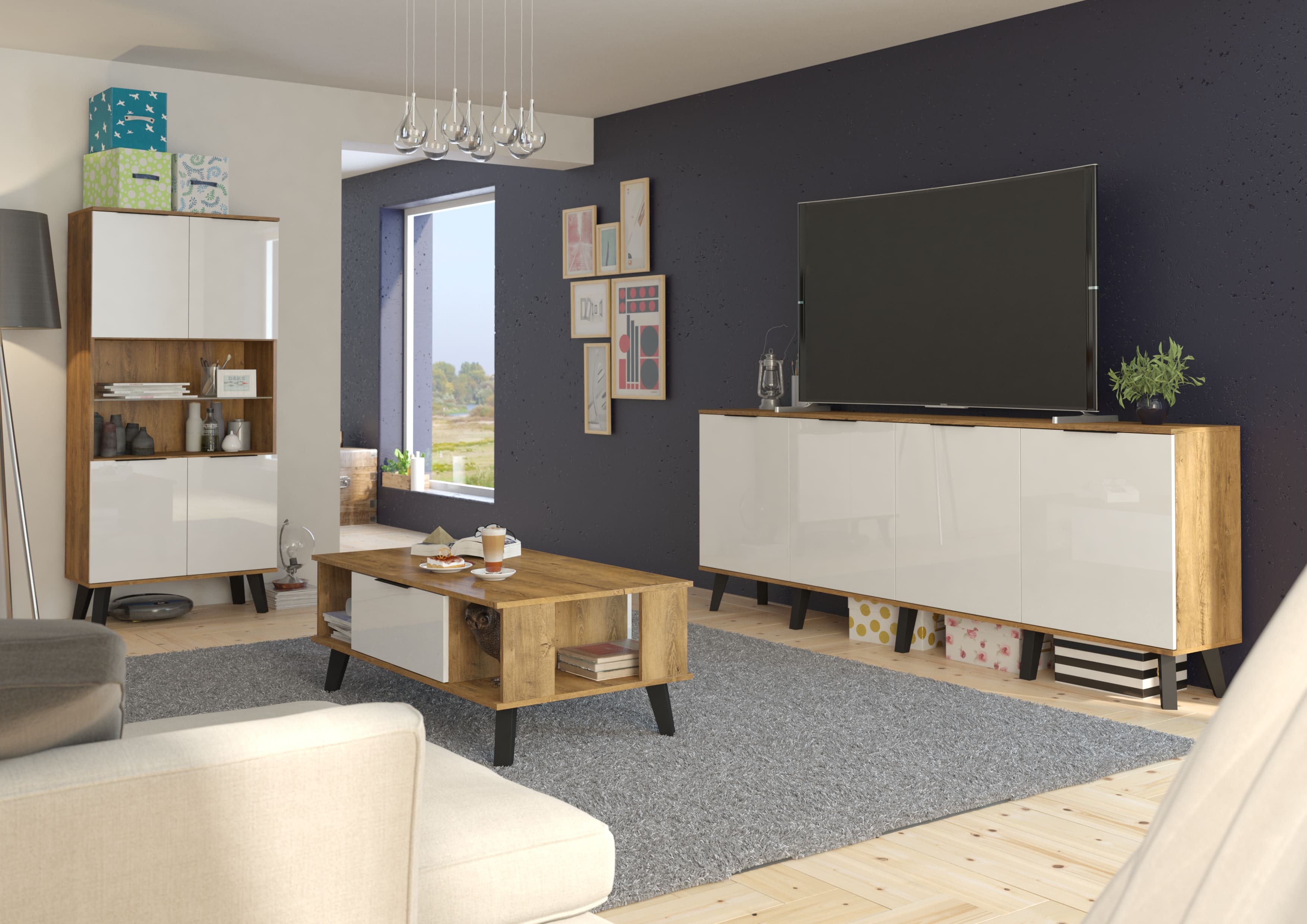 Obývací stěnu vám dodáme v demontu. Jednotlivé části sestavy si můžete také objednat samostatně, či je zkombinovat s jinými prvky kolekce Sven a vytvořit si tak obývák podle svých preferencí.