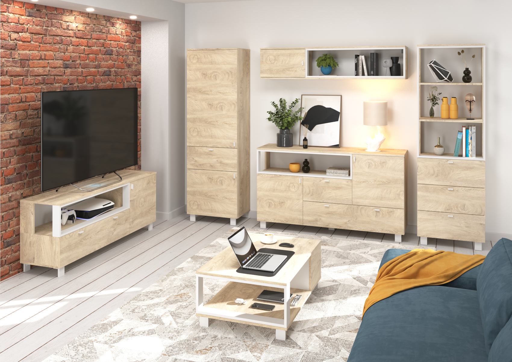 Obývací stěna Vegas vás zaujme svým moderním designem a přírodním provedením v kombinaci s černými či bílými detaily. Jednotlivé komodity jsou vyrobeny z kvalitních lamino desek o síle 16 mm. Desky mají ABS hranění, které zvyšuje odolnost pro odštípnutí hran. Součástí zásuvek a dvířek jsou jednoduché černé kovové úchyty, zároveň mají zabudovaný systém tichého dovírání. Nábytek stojí na černých kovových nožkách o velikosti 8 cm, které provzdušní váš celkový interiér. Nabízíme vám několik barevných variant.