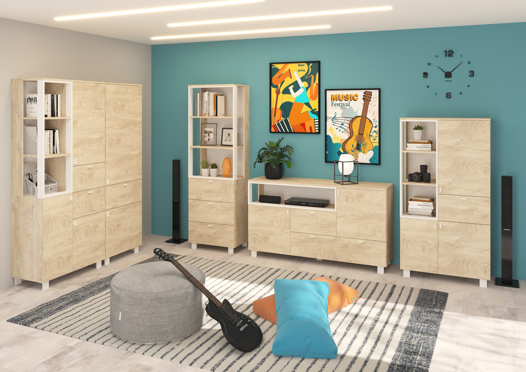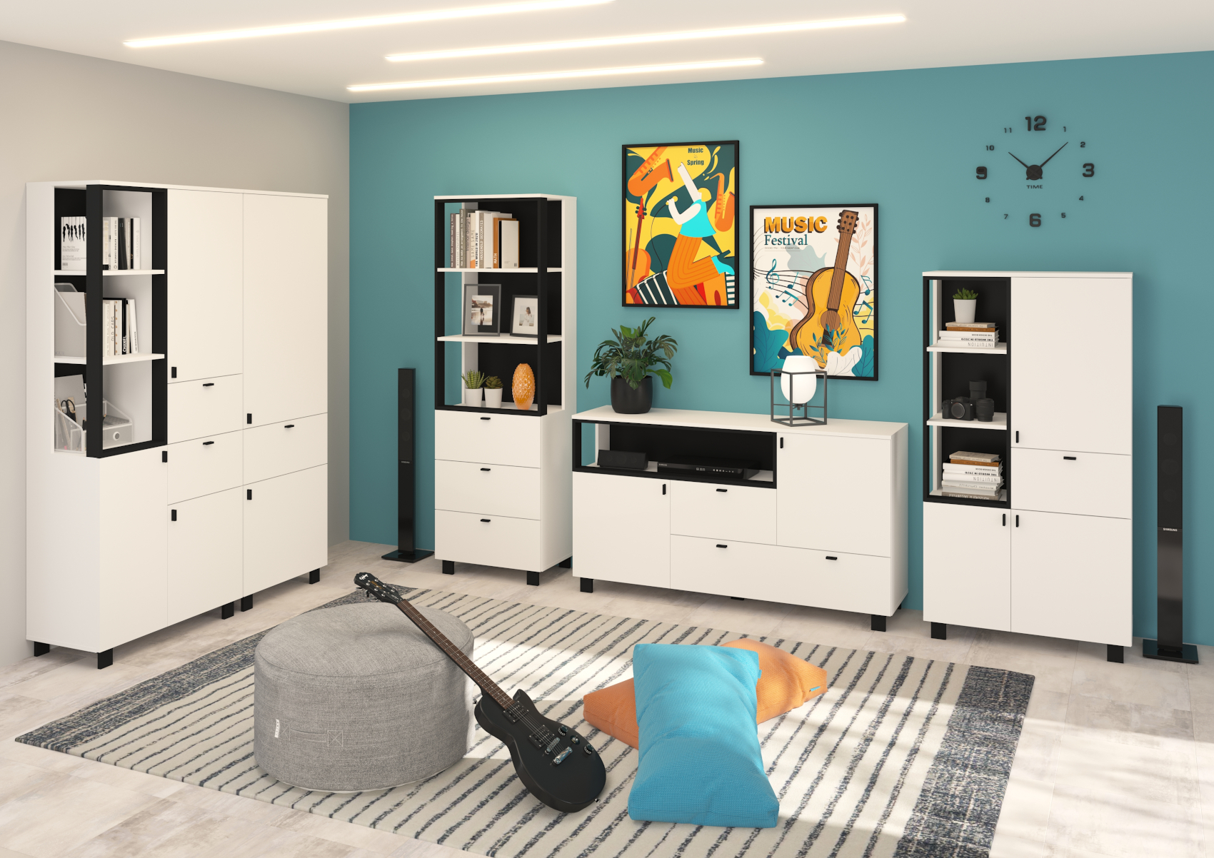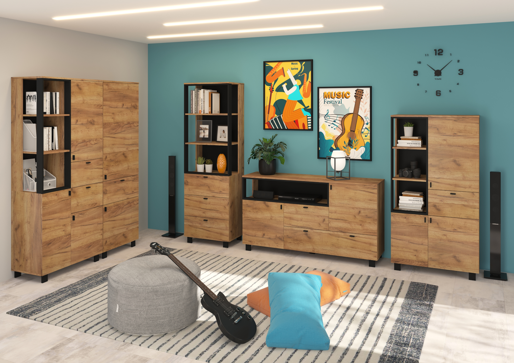 Obývací stěna je sestavena z jednotlivých komodit systému Vegas, ze kterých si vytvoříte svůj vysněný obývací pokoj či relaxační místnost.