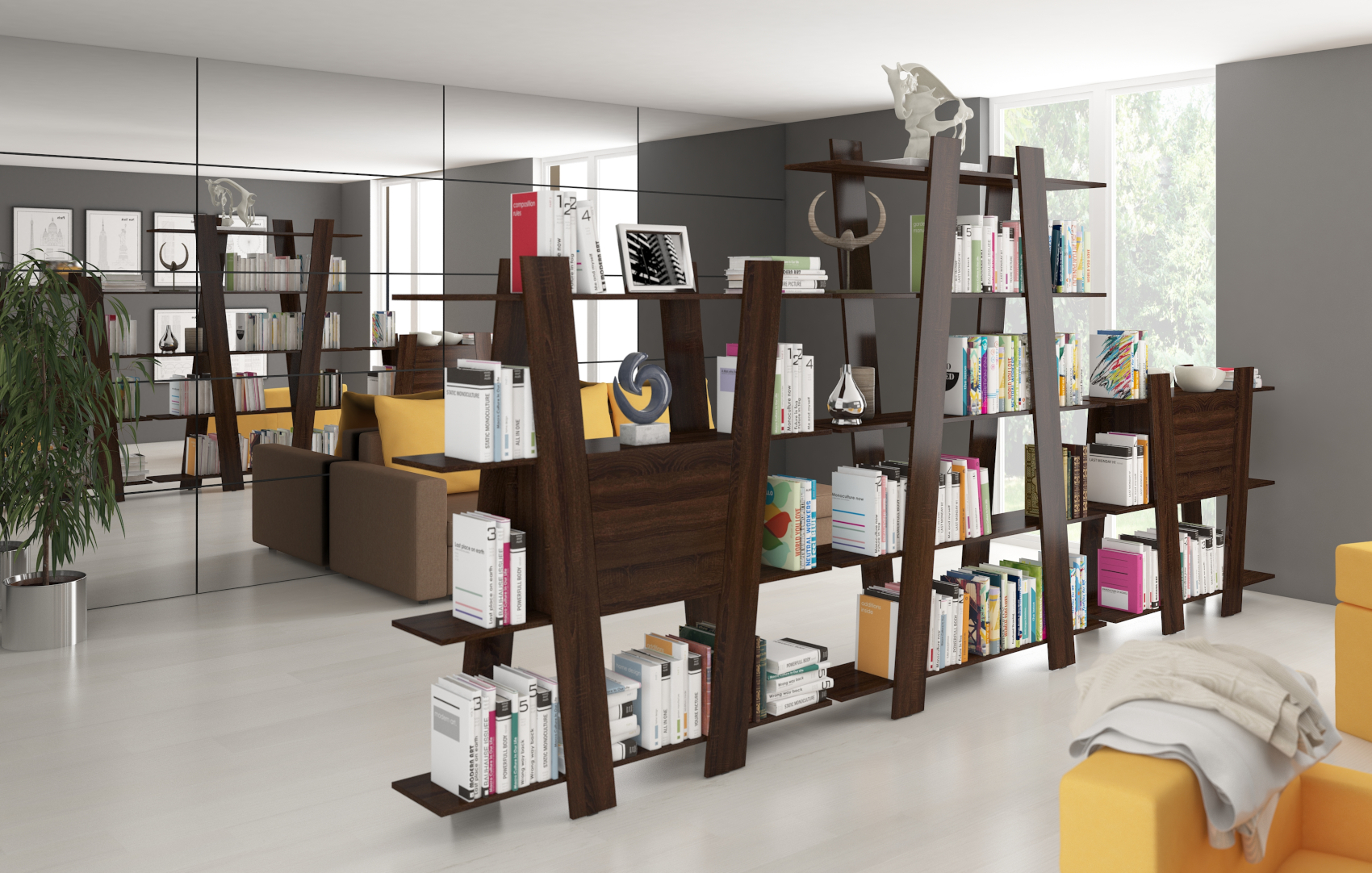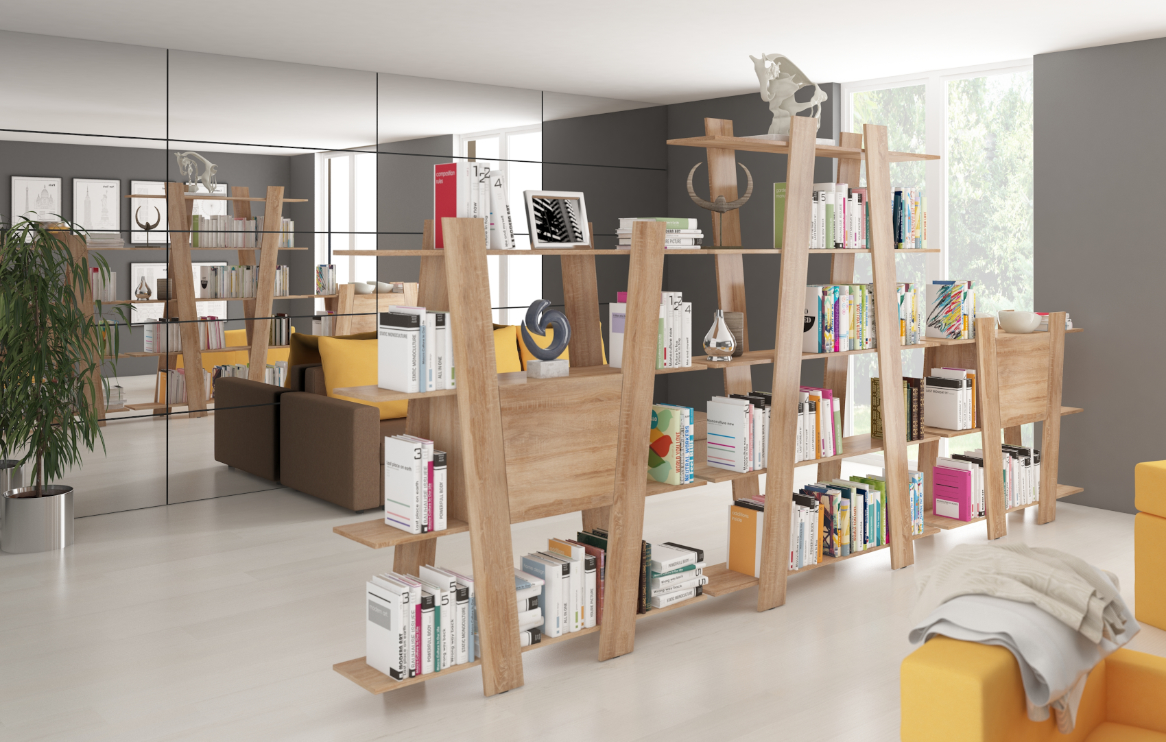 Stěna je sestavena z jednotlivých komodit systému Via, ze kterých si vytvoříte svůj vysněný obývací pokoj či pracovnu.