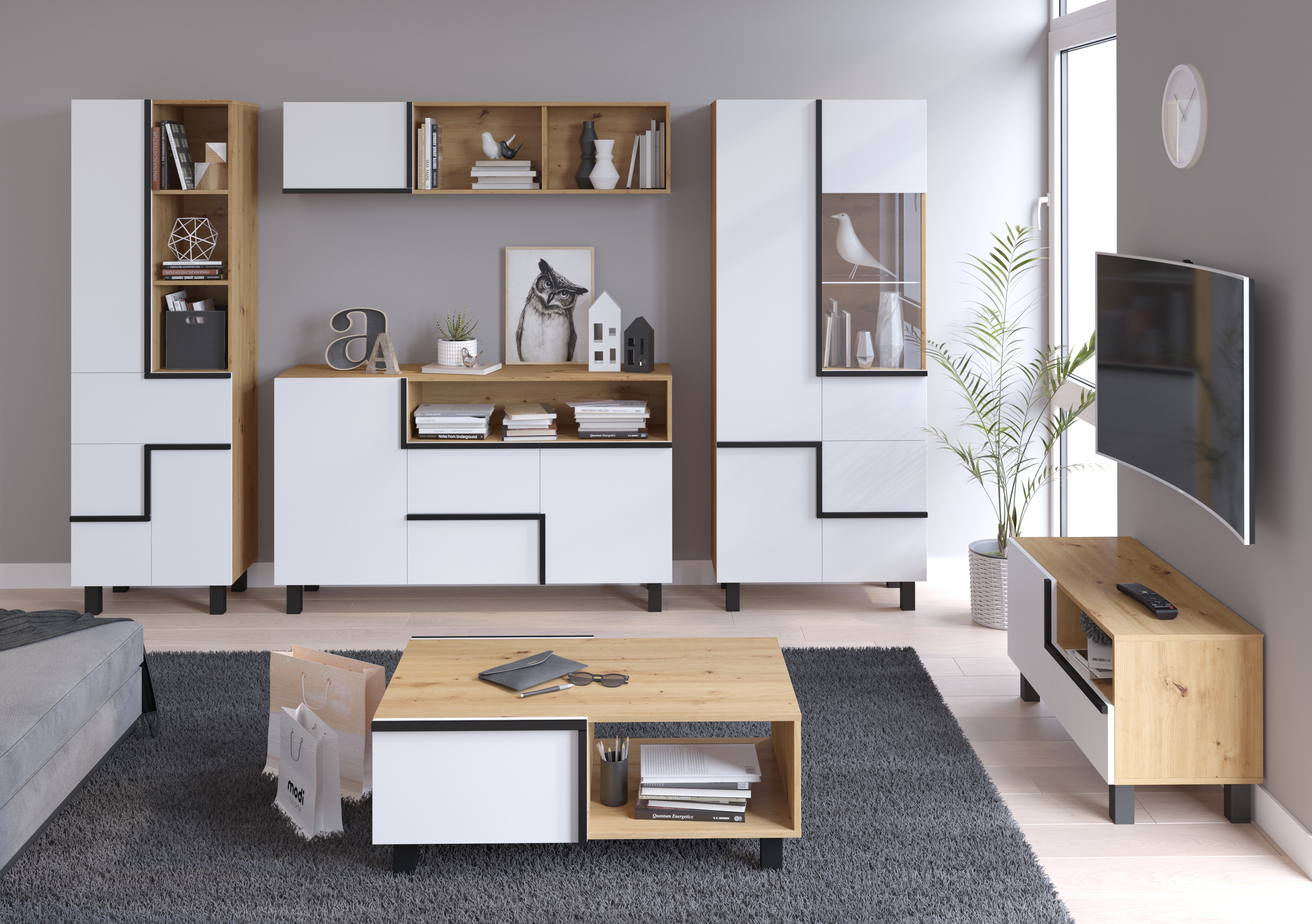 Vyobrazený konferenční stolek Lars 03 a TV stolek Lars 08 nejsou součástí stěny, ale můžete si je doobjednat samostatně, či je zkombinovat s jinými prvky kolekce a vytvořit si tak obývák podle svých představ.