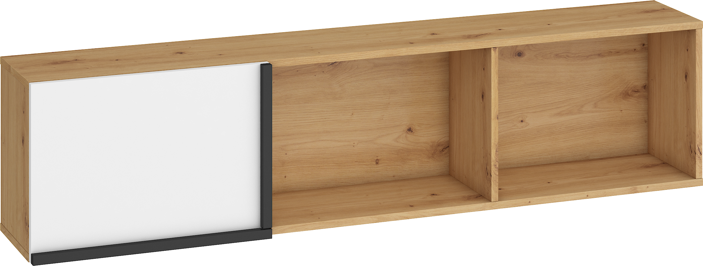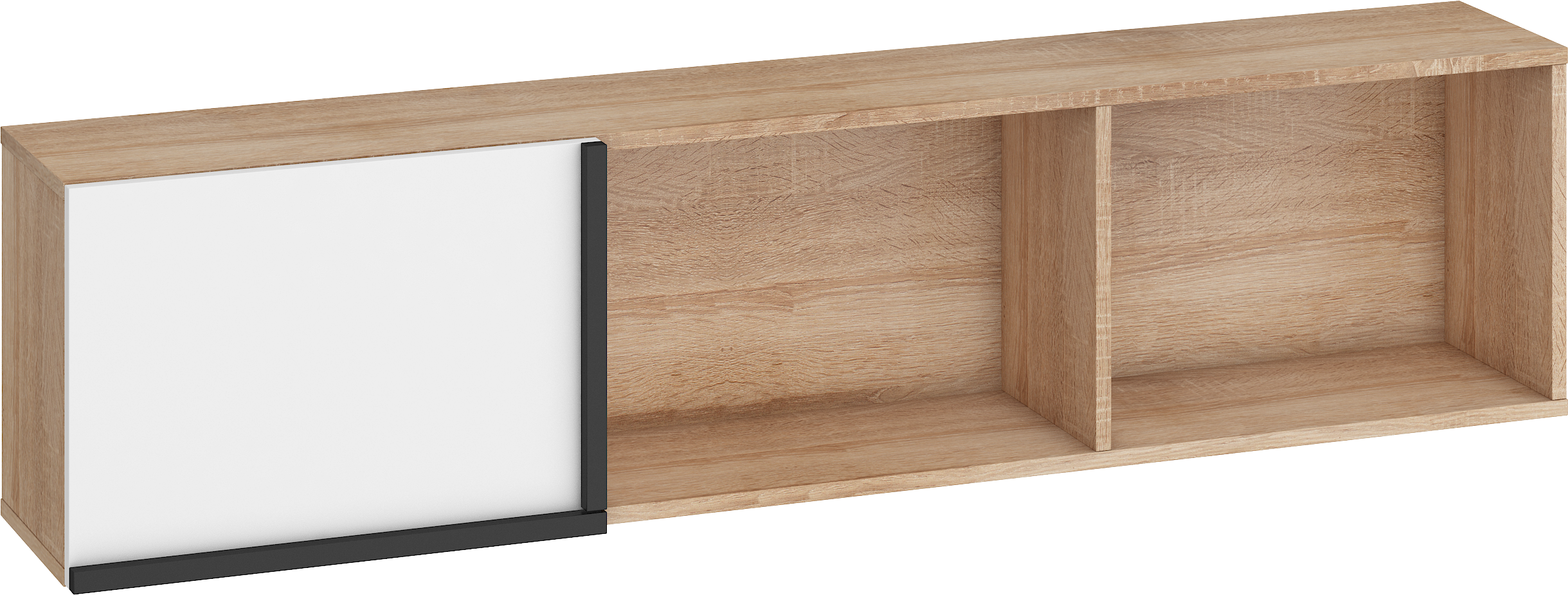 Součástí police jsou 1 dvířka a 2 otevřené nikdy k vystavení vašich oblíbených knih, dekorací či rámečků s fotografiemi.
