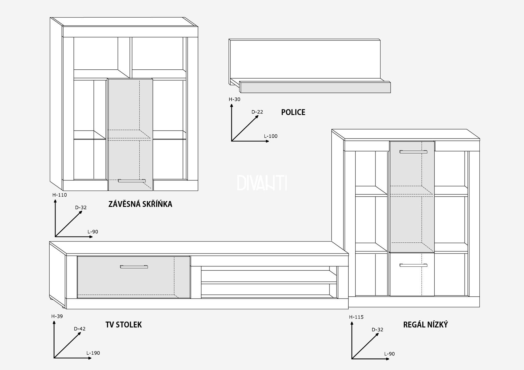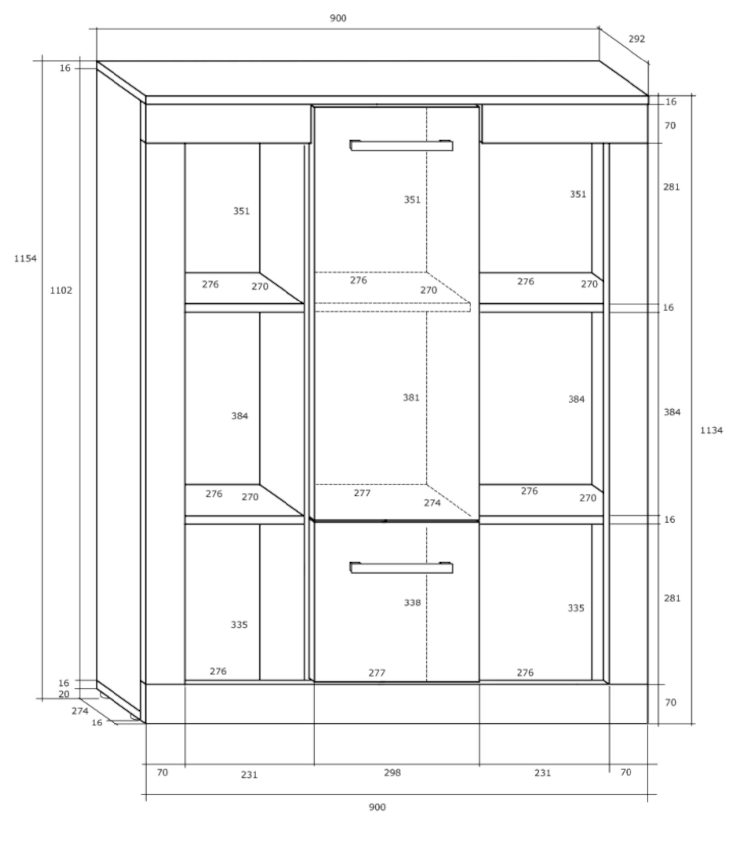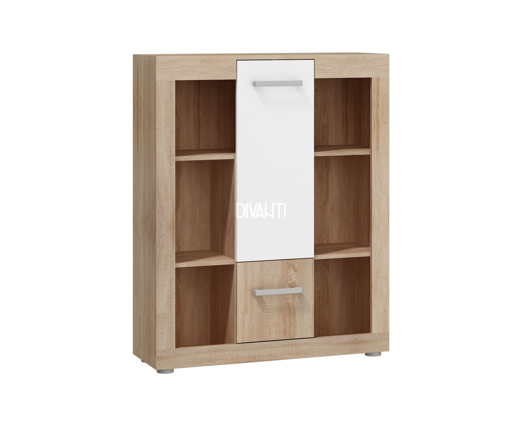 Součástí jsou 2 plná prostřední dvířka, za kterými je vložena 1 lakovaná police. Zbytek prostoru je otevřený a můžete jej využít k vystavení vašich oblíbených knih, dekorací či jiných nezbytností.