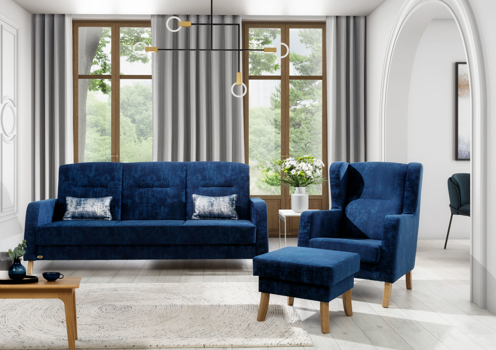 Sedací souprava Marino vás zaujme svým klasickým designem s jedinečnými prvky elegance. Součástí sestavy je taburet, křeslo a pohovka s rozkládacím systémem určeným ke spánku a prostorem k uložení ložního prádla nebo přikrývky. Nábytek je z masivního bukového dřeva, které vám díky své tvrdosti zajistí kvalitu a stabilitu.