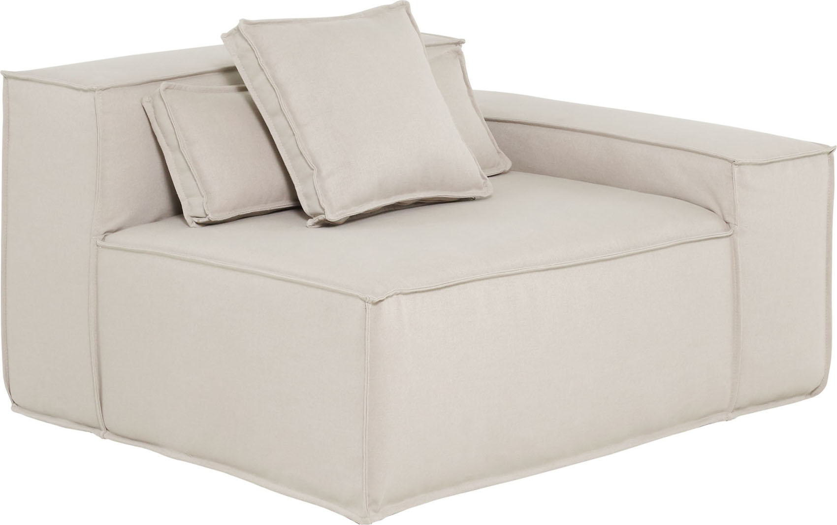 Moderní jednomístný modul Chill s odnímatelným krytem vás zaujme svým jednoduchým a elegantním designem. Skelet je vyroben z masivního borovicového a bukového dřeva, překližky a nábytkové desky. Sedáky jsou vyplněny pružinami faliste a vysoce elastickou HR pěnou. Opěradlo je také z vysoce elastické HR pěny a silikonové výplně. Tato kombinace materiálů vám zajistí kvalitu, pevnost a relax po náročně stráveném dni. Máte možnost si vybrat pravé nebo levé provedení.