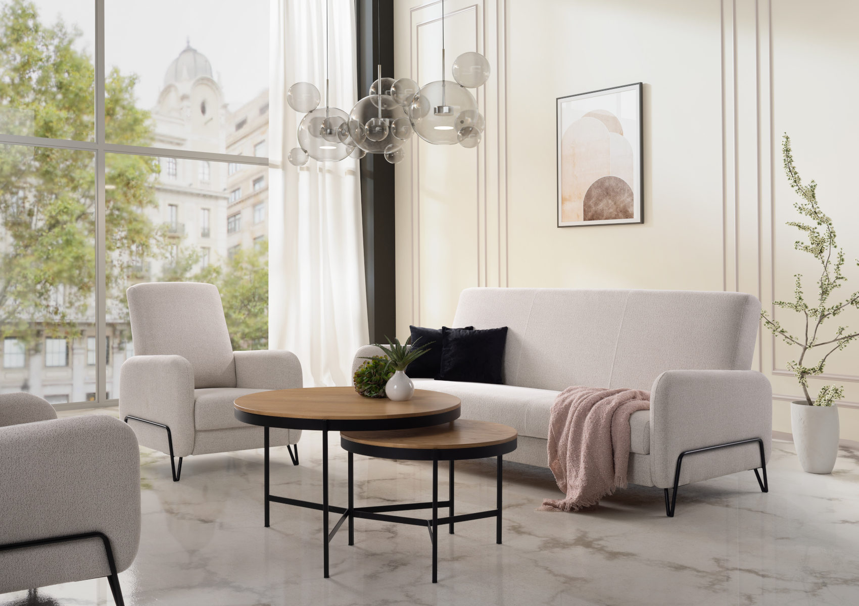 Pohovka Possi Clic-Clac vás zaujme svým elegantním designem s retro prvky. Má rozkládací systém určený ke spánku a prostor k uložení ložního prádla, přikrývek nebo polštářů. Skelet je z masivního bukového dřeva, které je odolné a vzhledem k jeho tvrdosti vám zaručí stabilitu sedačky.