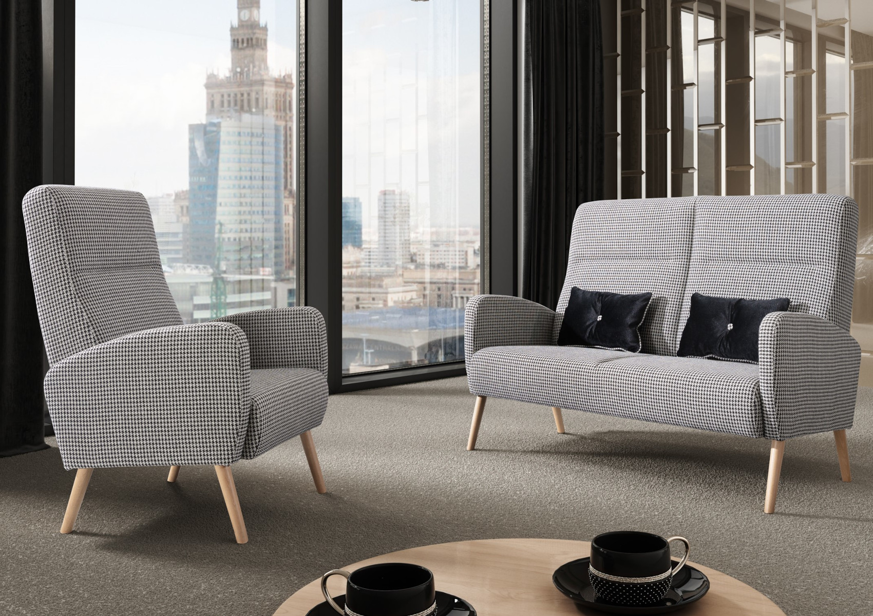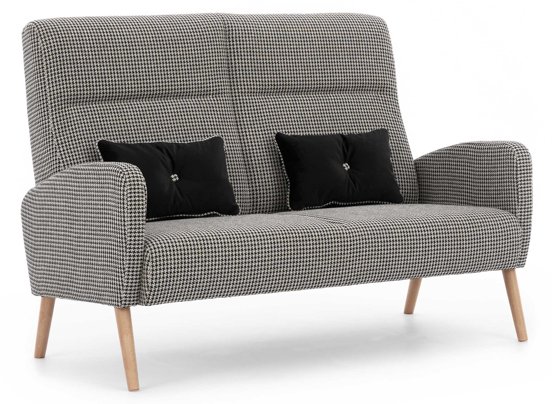 Dvoumístná pohovka Boretto vás zaujme svým elegantním designem s retro prvky. Skelet je z masivního bukového dřeva, které je odolné a vzhledem k jeho tvrdosti vám zaručí stabilitu sedačky.