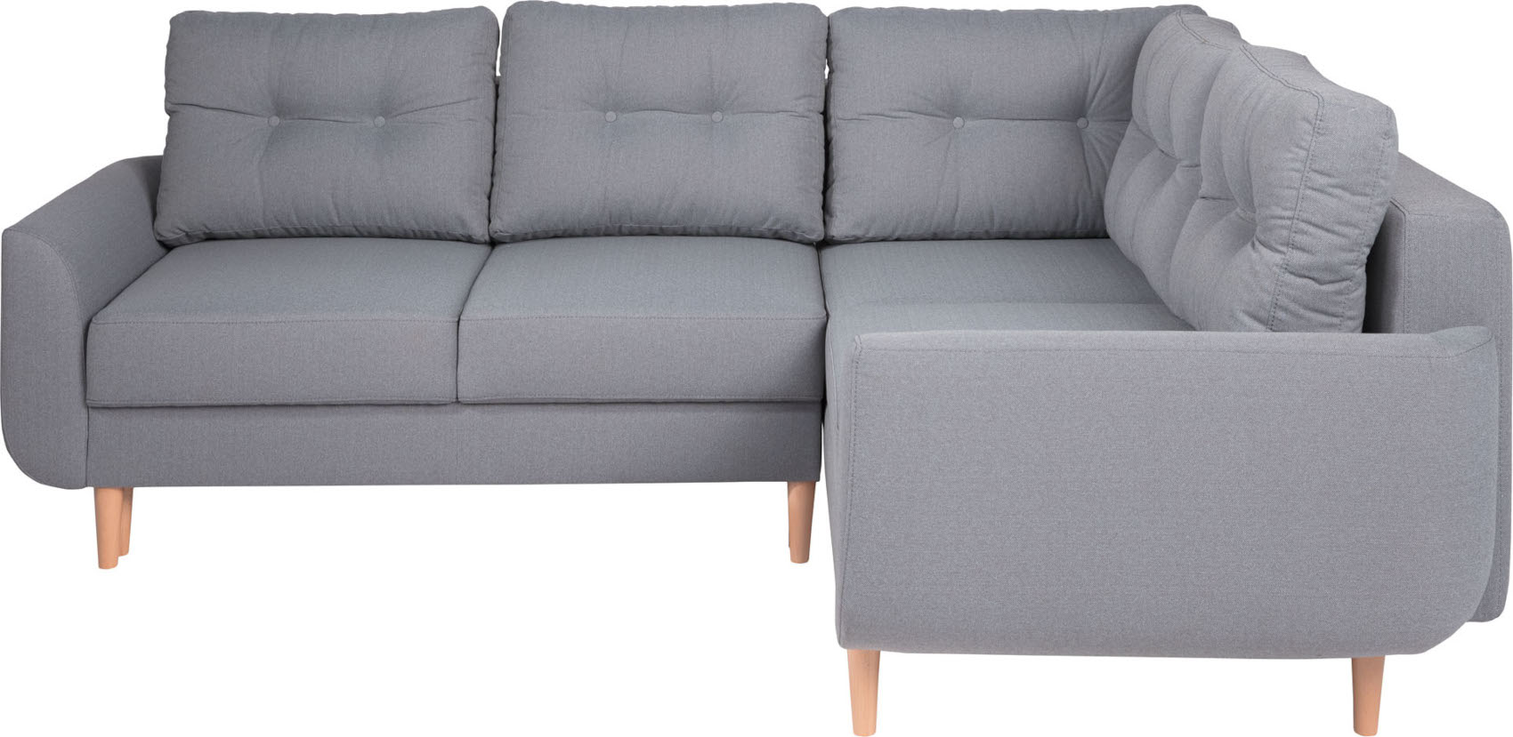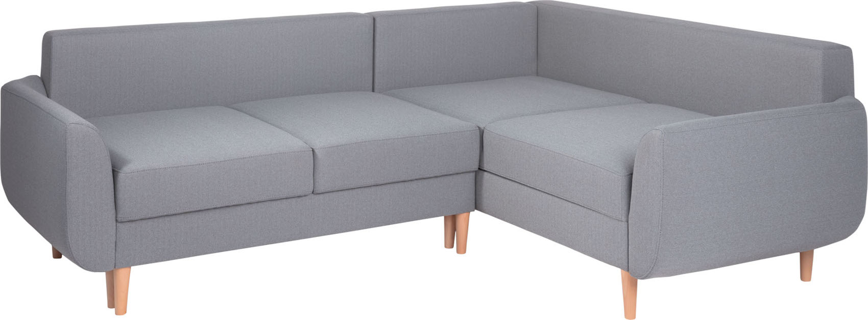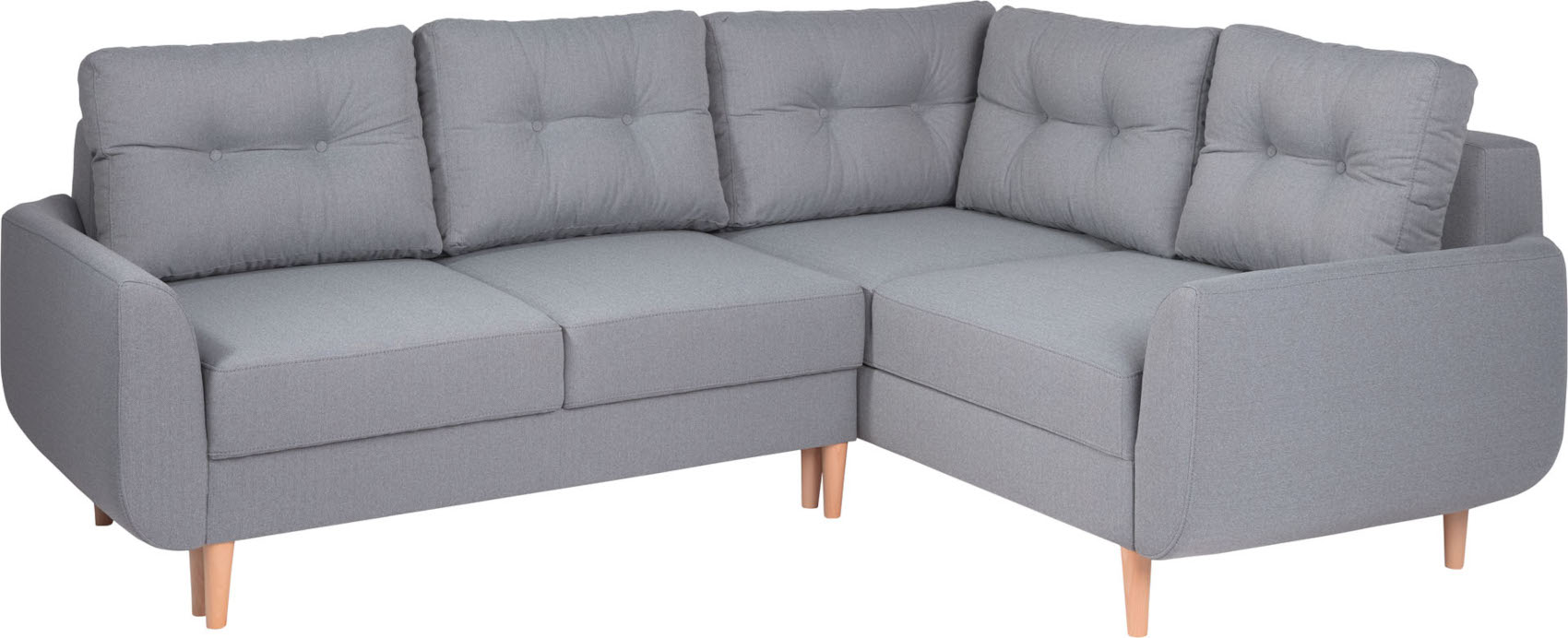 Rohová sedací souprava Cotta vás zaujme svým jednoduchým designem s prošívanými opěráky. Skelet je vyroben z masivního bukového dřeva a dále očalouněn potahovou látkou. Úzké vysoké dřevěné nožky provzdušní váš celkový interiér a dodají nábytku nádech retro stylu.