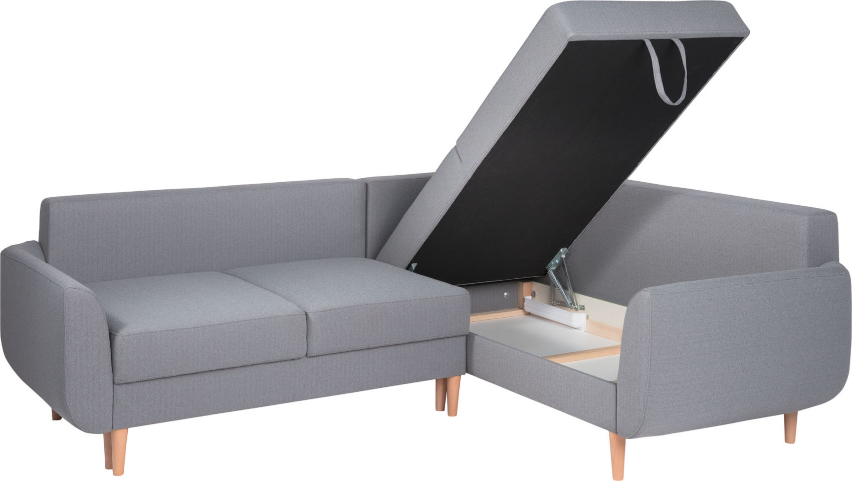Součástí pohovky je prostor k uložení lůžkovin nebo přikrývky a rozkládací systém. Ten lze využít k občasnému přespání pro 2 osoby.