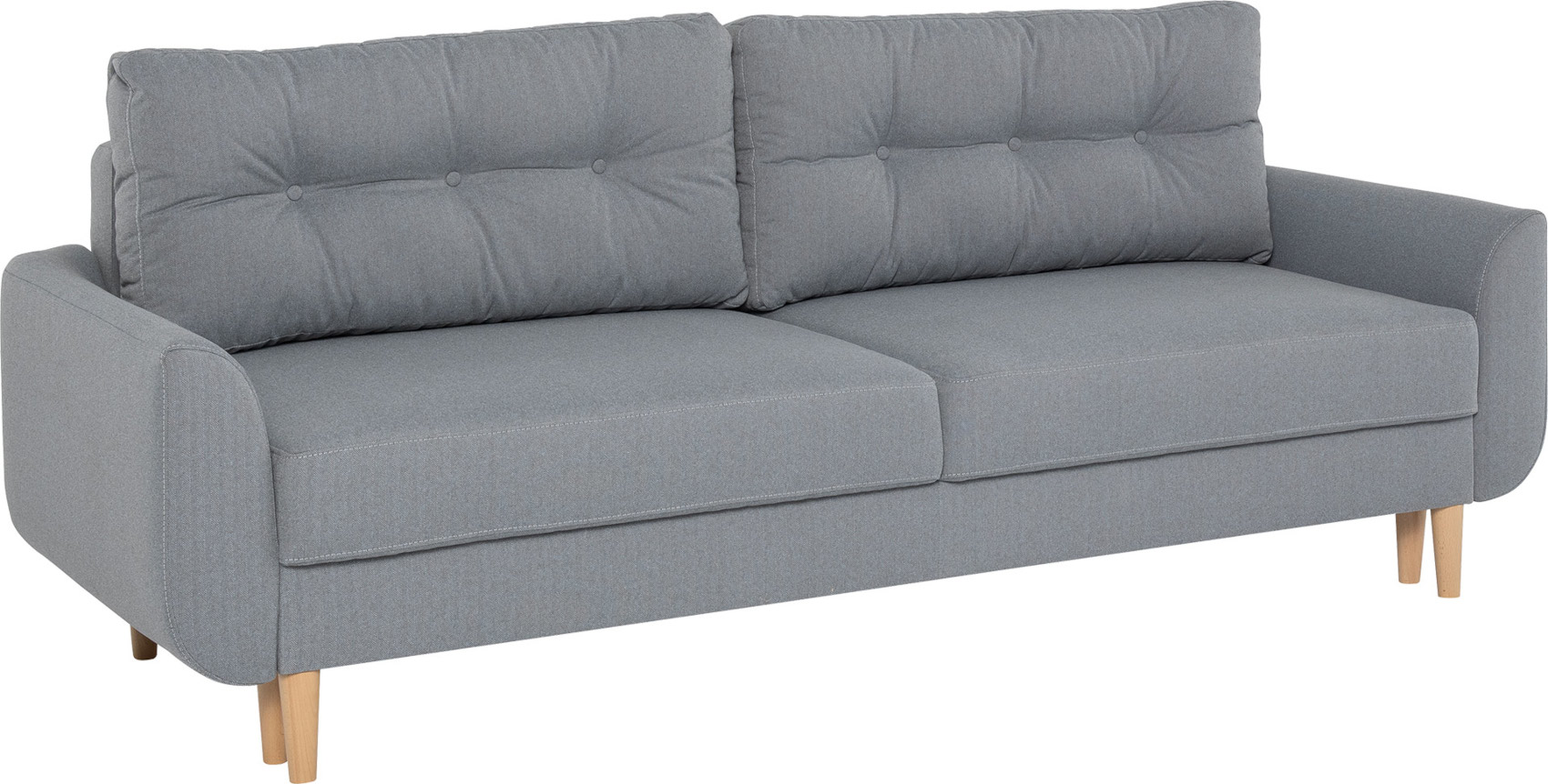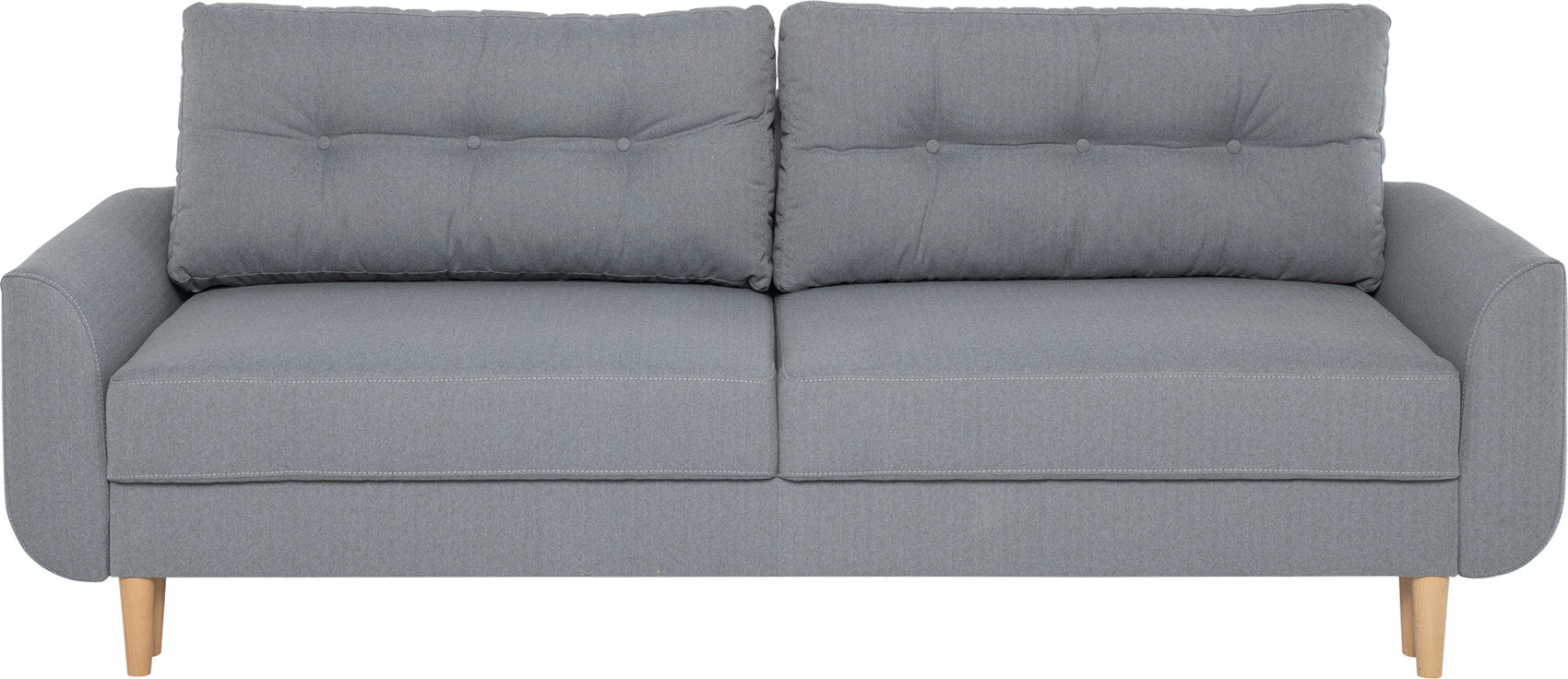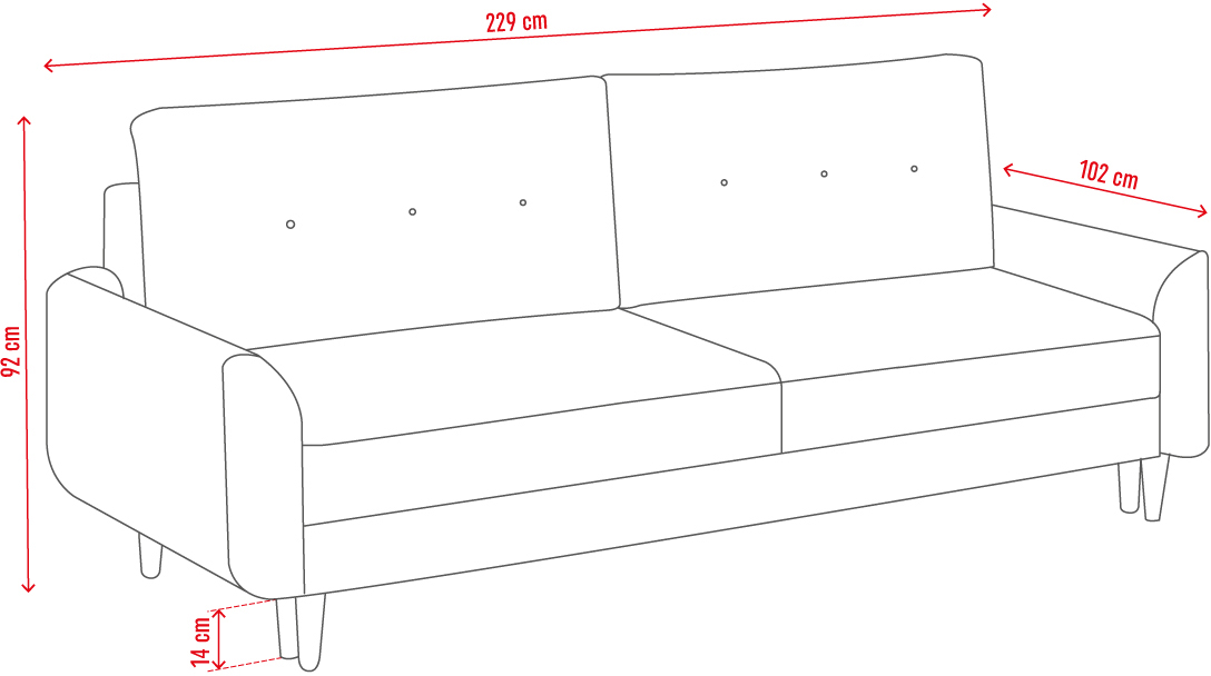 Trojmístná pohovka Cotta vás zaujme svým jednoduchým designem s prošívanými opěráky. Skelet je vyroben z masivního bukového dřeva a dále očalouněn potahovou látkou. Úzké vysoké dřevěné nožky provzdušní váš celkový interiér a dodají nábytku nádech retro stylu.