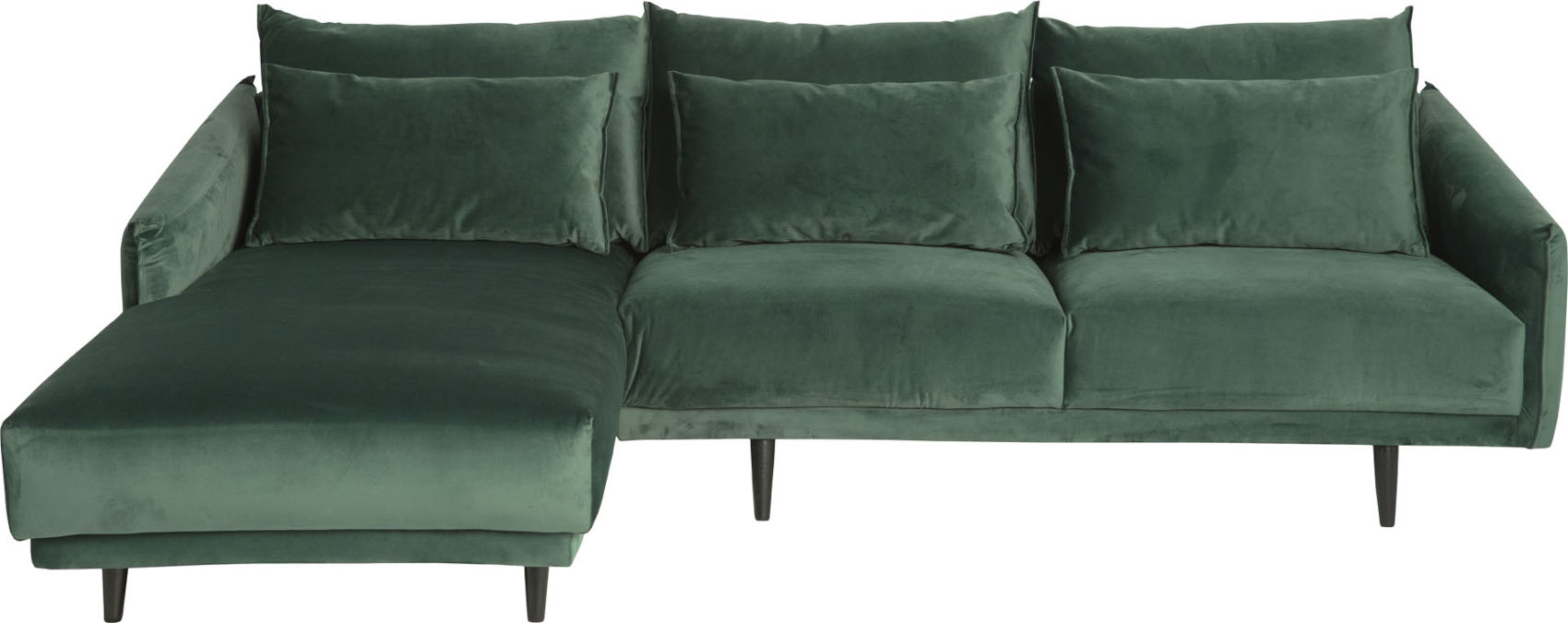 Moderní rohová sedací souprava Duvet vás zaujme svým elegantním a luxusním designem. Je vyrobena z masivního bukového dřeva a očalouněna potahovou látkou. Úzké vysoké nožky provzdušní váš celkový interiér a dodají pohovce lehkost. Sedáky jsou vyplněny pružinami faliste spolu s vysoce elastickou HR pěnou. Ve vnitřním prostoru opěráků jsou pěnové a silikonové granule. Tato kombinace materiálů vám zajistí relax a pohodlí po náročně stráveném dni.
