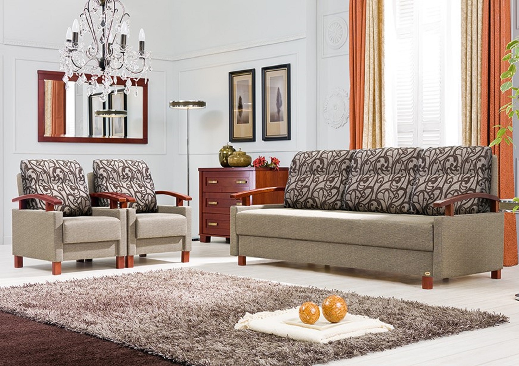 Pohovka Max X s rozkladem a úložným prostorem z bukového dřeva