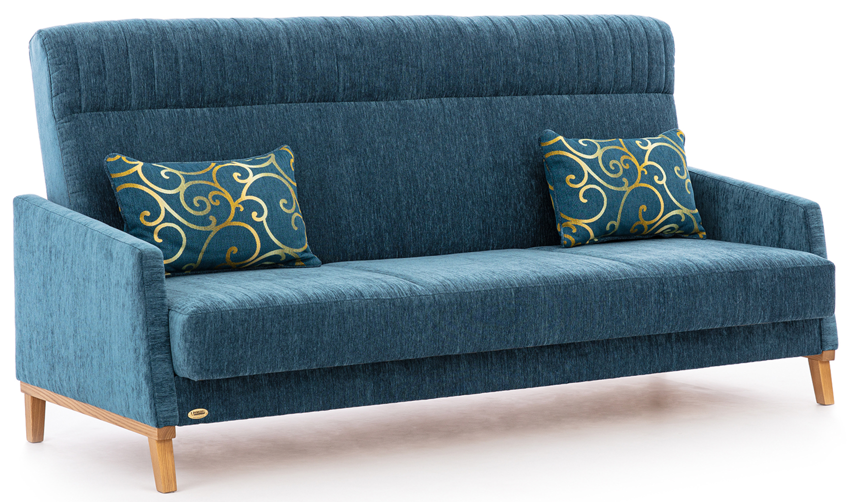 Pohovka Moretti Clic-Clac vás zaujme svým elegantním designem s retro prvky. Má rozkládací systém určený ke spánku a prostor k uložení ložního prádla, přikrývek nebo polštářů. Skelet je z masivního jasanového dřeva, které je odolné a vzhledem k jeho tvrdosti vám zaručí stabilitu sedačky.