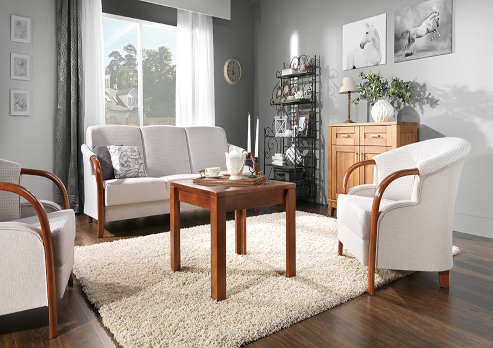Trojmístná pohovka Oliwia D bez rozkladu je z masivního bukového dřeva, které je odolné a vzhledem k tvrdosti vám zaručí stabilitu sedačky.