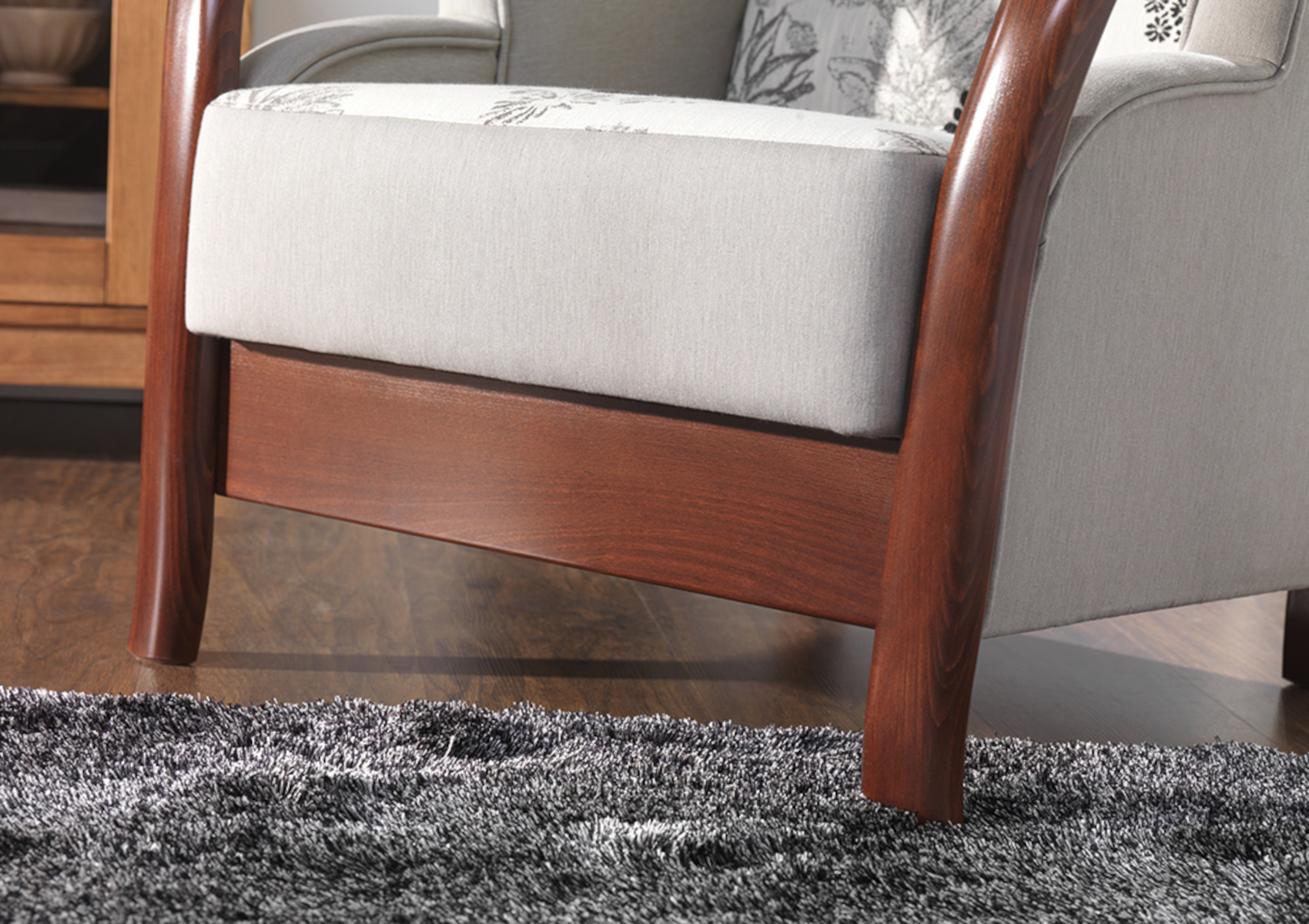 Dvoumístná pohovka Oliwia E bez rozkladu je z masivního bukového dřeva, které je odolné a vzhledem k tvrdosti vám zaručí její stabilitu.