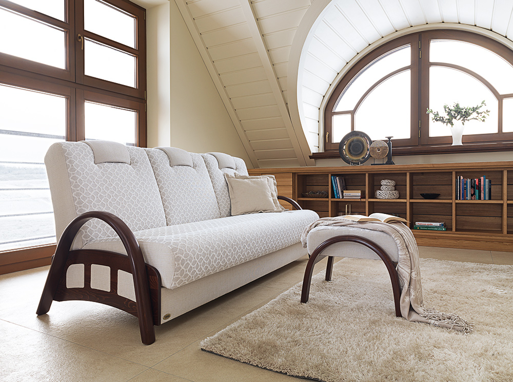 Pohovka Oliwia H Clic-Clac s rozkladem a úložným prostorem z bukového dřeva