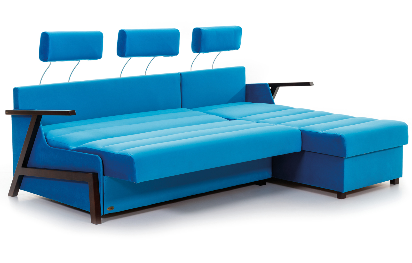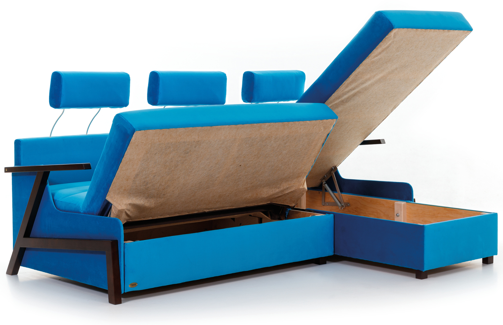 Rohová sedací souprava Pedro s rozkladem a ÚP z bukového dřeva