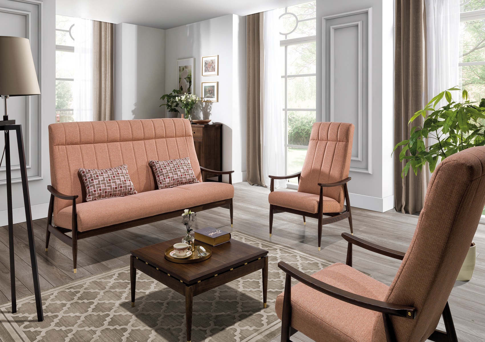 Trojmístná pohovka Perla bez rozkladu a úložného prostoru je z tvrdého masivního dřeva, které je odolné a zaručí stabilitu sedačky.