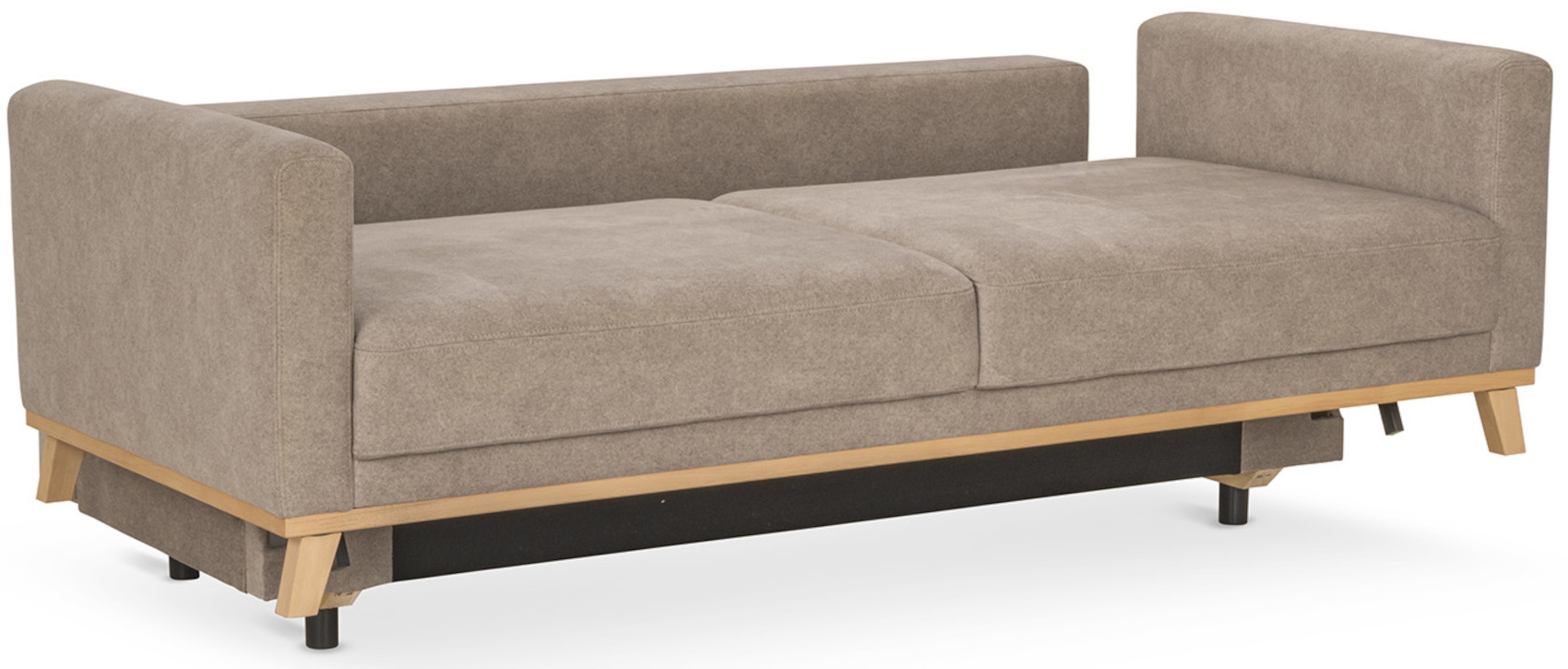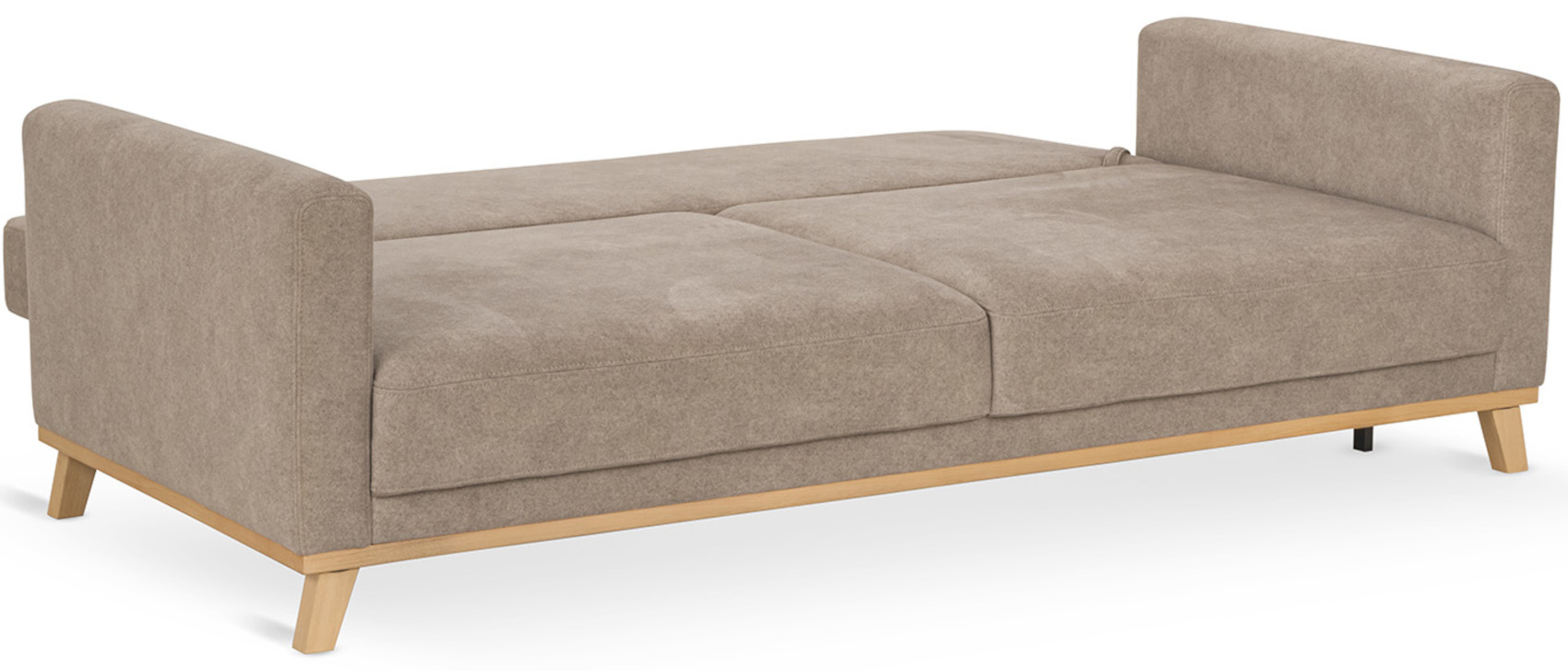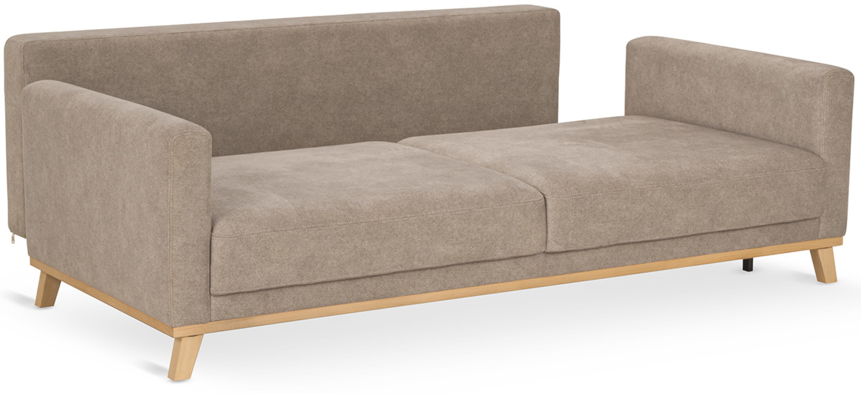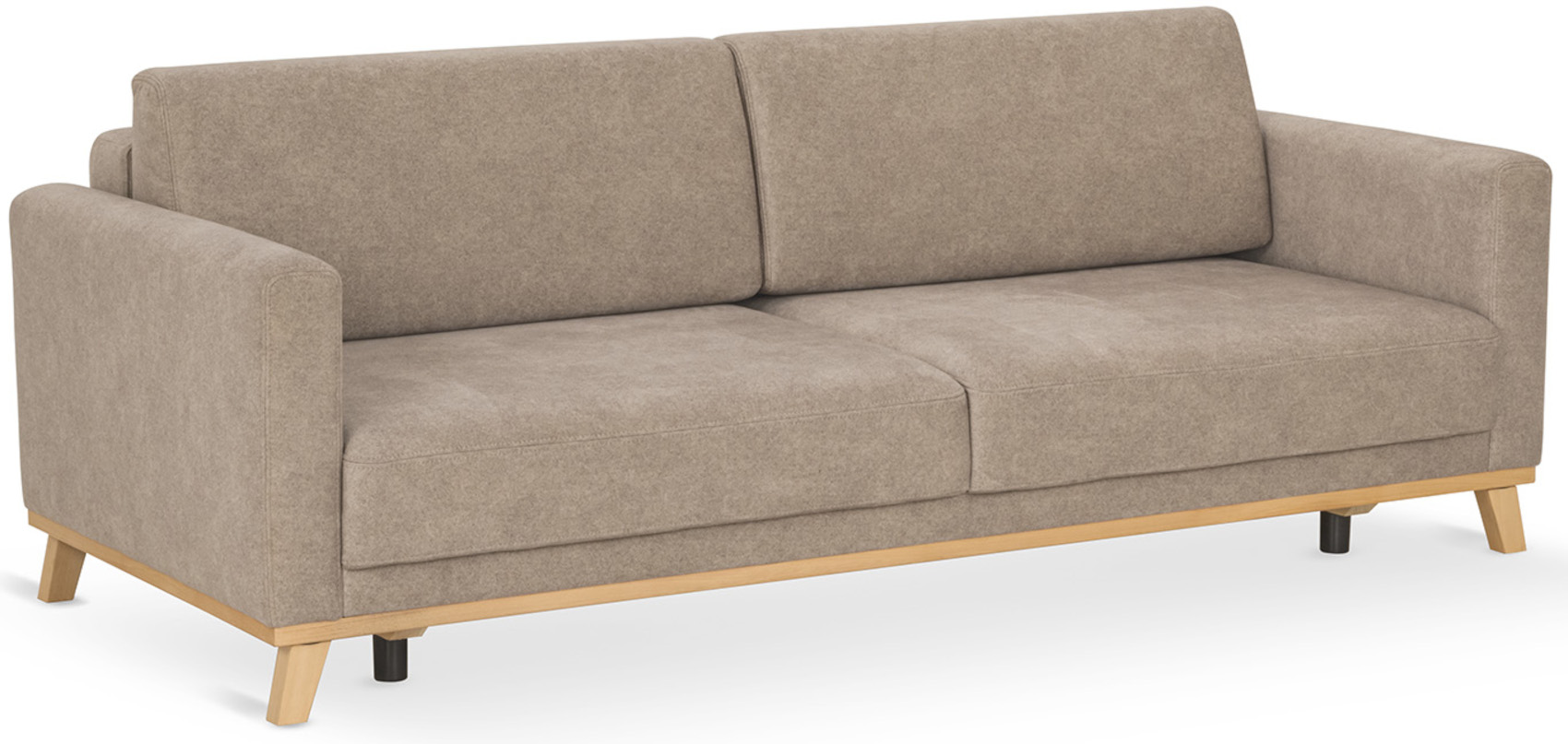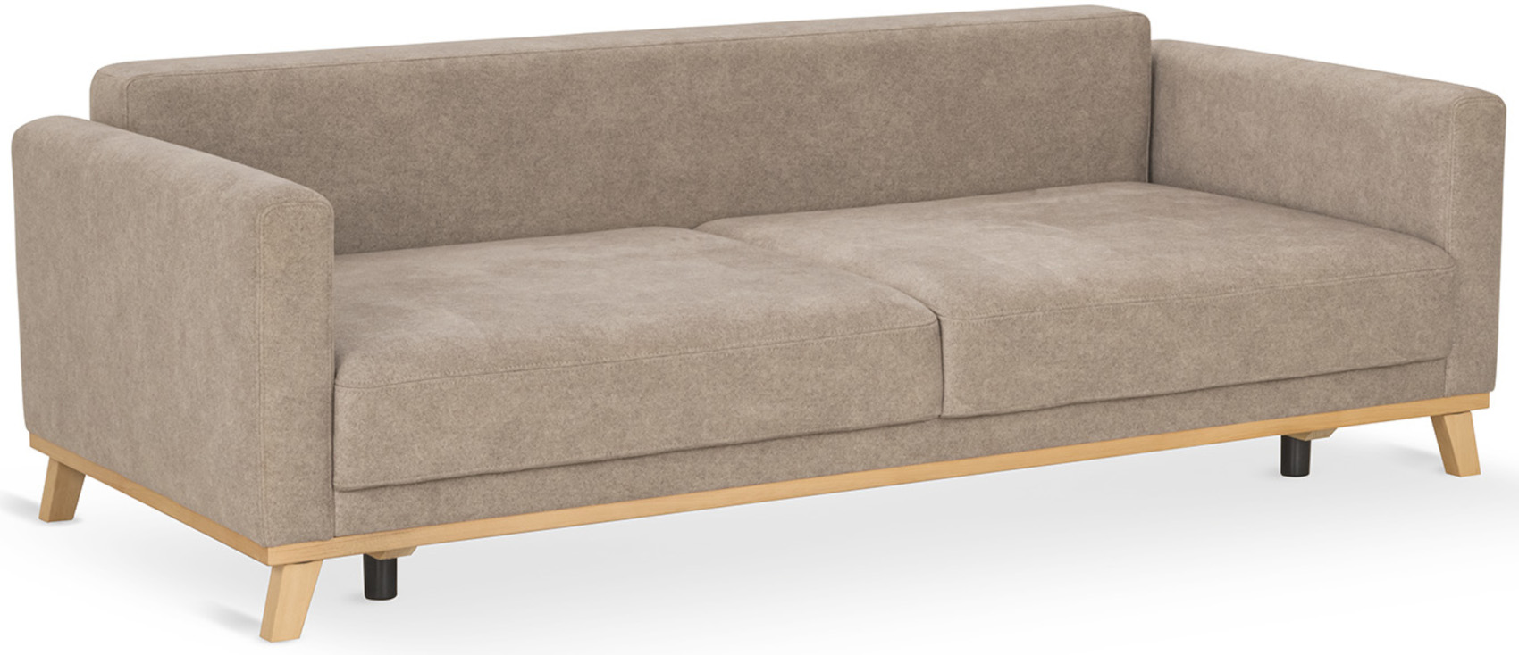 Moderní trojmístná pohovka Repose vás zaujme svým jednoduchým skandinávským designem. Skelet je vyroben z kvalitního bukového dřeva a očalouněn potahovou látkou. Pohovka stojí na vyšších bukových nožkách, které provzdušní interiér. Součástí pohovky je rozkládací systém, který lze využít k občasnému přespání.