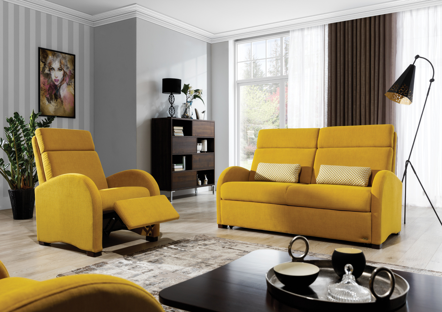 Sedák je vyroben pružinami faliste spolu s polyuretanovou PUR a studenou HR pěnou. Opěráky jsou také vyplněné HR a PUR pěnou. Kombinace všech výplní zaručuje pohodlné a pevné sezení.