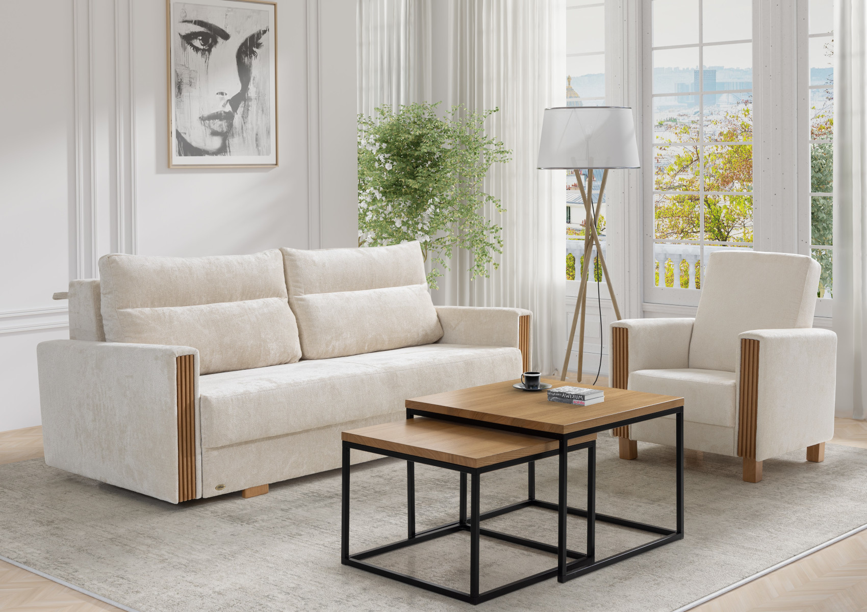 Kanape Verdi s rozkladem, úložným prostorem, z bukového dřeva