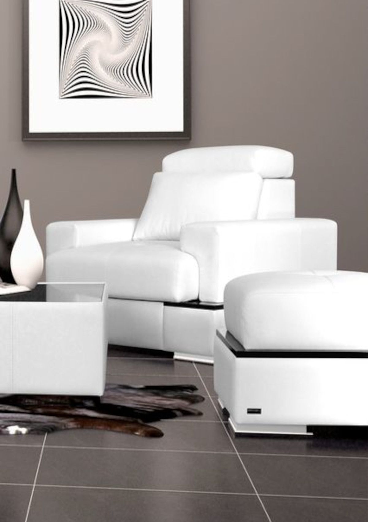 Sedák je vyplněn pružinami s vysokoelastickou pěnou. Ve vnitřním prostoru opěradla jsou pružiny faliste v kombinaci s latexovou PUCH pěnou. Použitý materiál vám zajistí příjemné a měkké sezení. K opěradlu je připevněn záhlavek s pneumatickým zvedáním, který má až 7 stupňů poloh a zaručí vám správné držení těla. Polohovatelné jsou také područky se 3 stupni různých poloh. Černé prvky kolem křesla vám nabízíme z kvalitního lamina nebo v lesklé či matné variantě za příplatek.