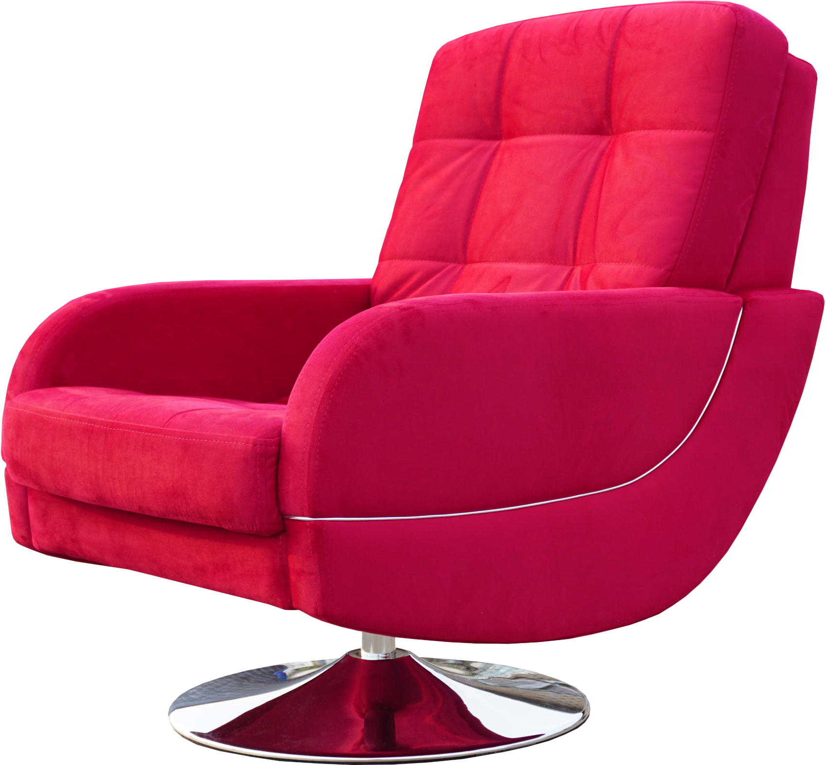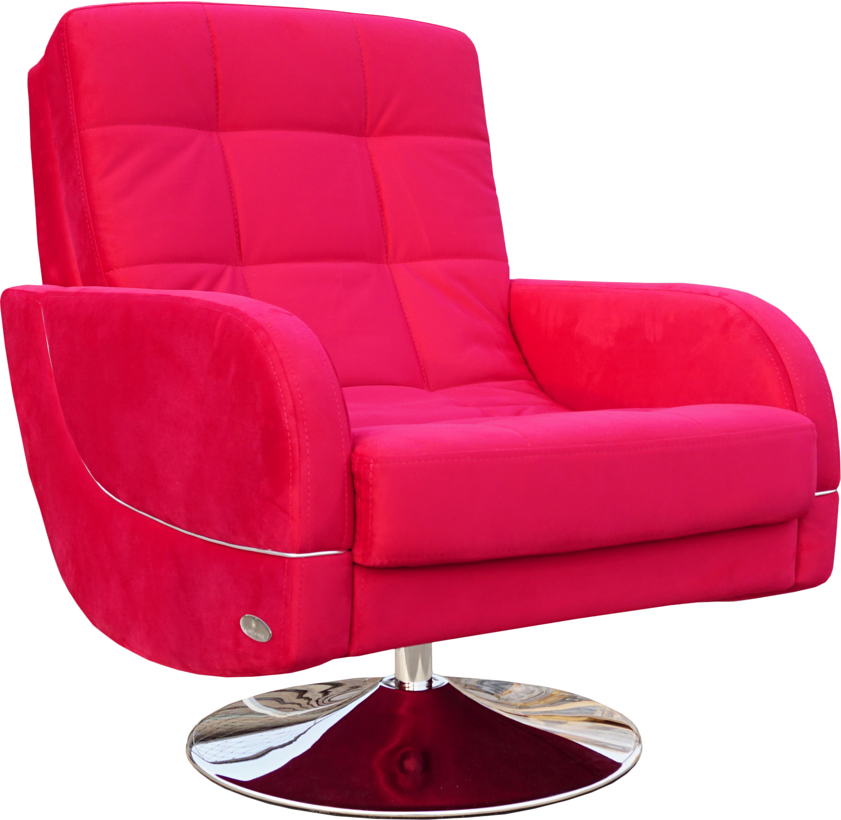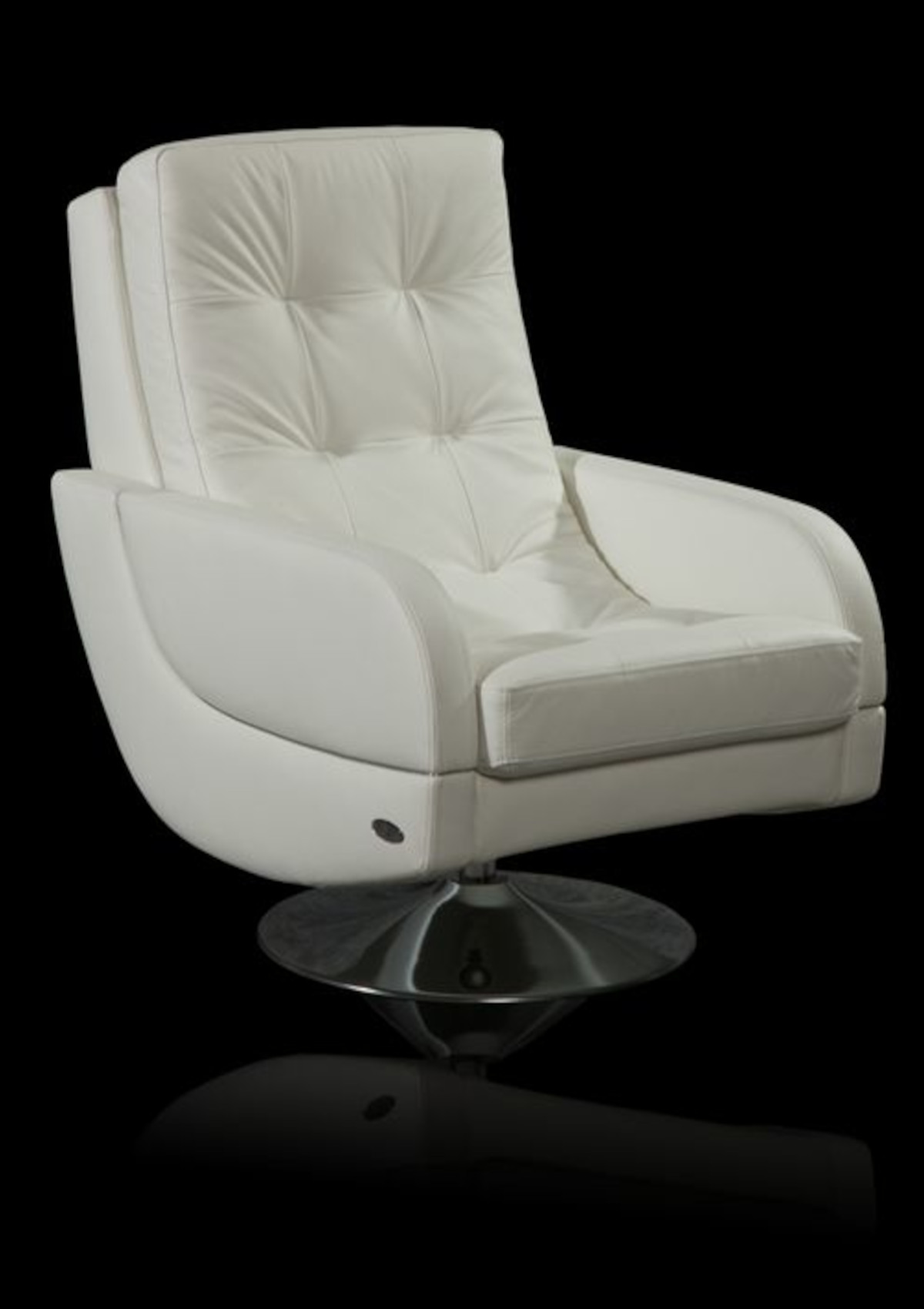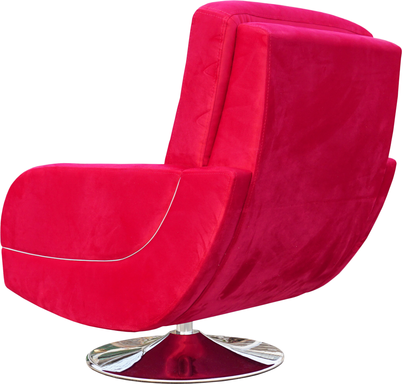 Sedačka stojí na otočné masivní kovové podnoži ve stříbrné barvě.