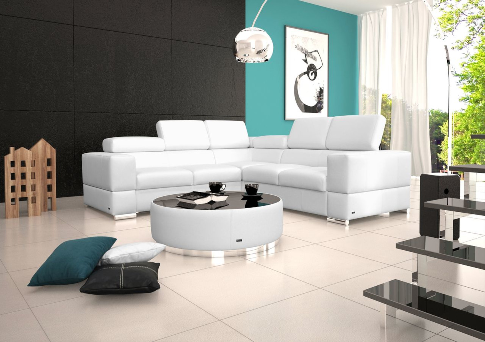 Moderní rohová sedací souprava Destiny vás zaujme svým luxusním designem s prvky elegance. Chromové lišty podél obvodu sedačky dodají nábytku jedinečný vzhled. Skelet je vyroben z masivního bukového dřeva v kombinaci s nábytkovou překližkou. Jedná se o vysokozátěžovou sedačku. Kovová konstrukce s ocelovou výztuží vám zaručí kvalitu, stabilitu a dlouhou životnost. Sedačka je očalouněna potahovou látkou, kůží nebo ekokůží - je pouze na vás, jaký typ si vyberete.