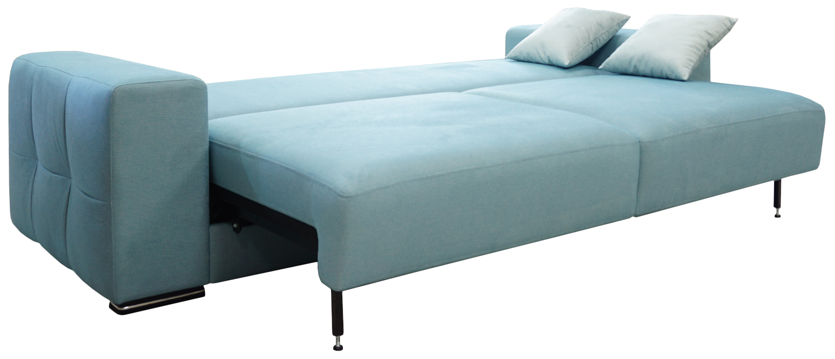 Součástí pohovky je rozkládací systémem ke každodennímu spánku a prostor k uložení ložního prádla, přikrývek a polštářů. Sedačka stojí na nízkých chromových nožkách ve stříbrném odstínu