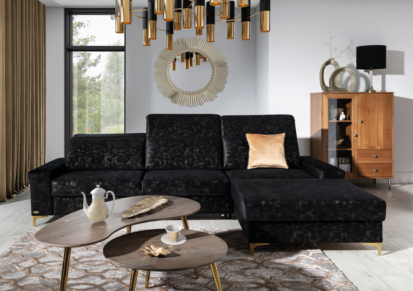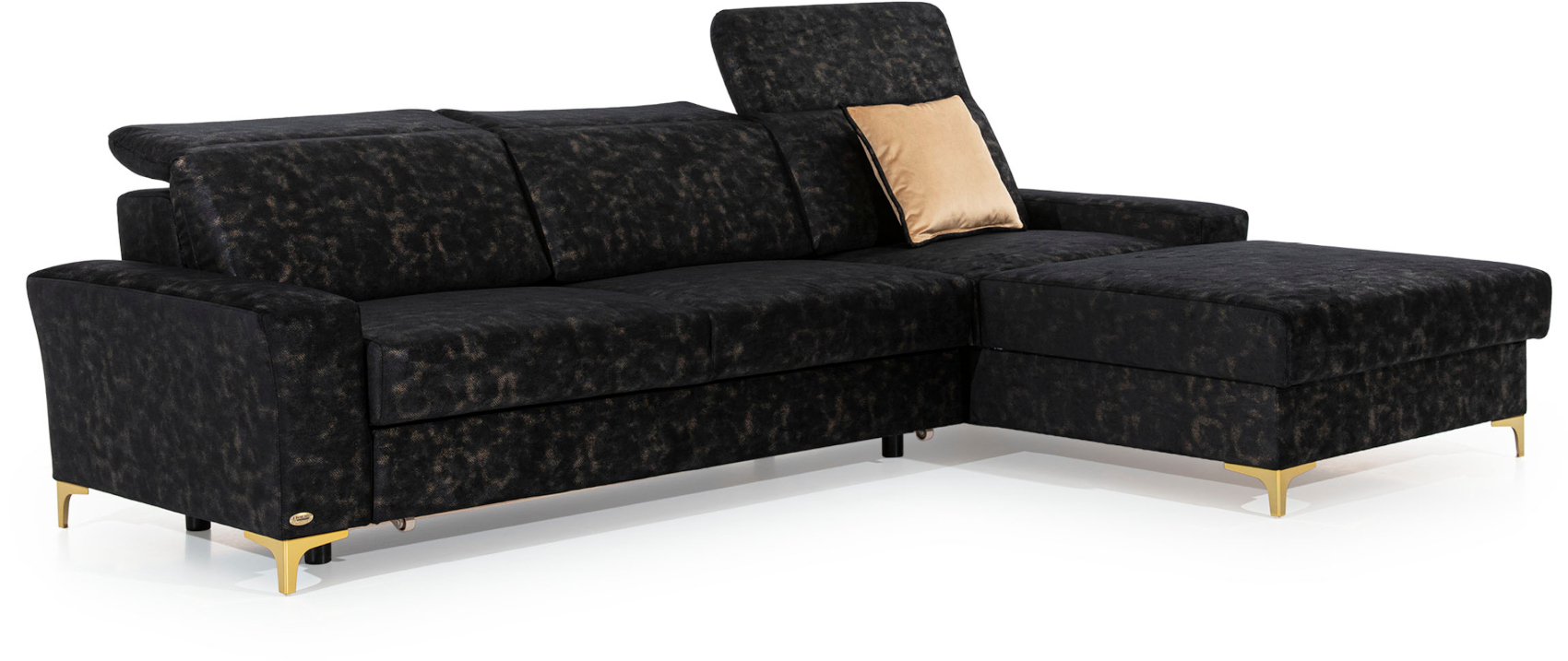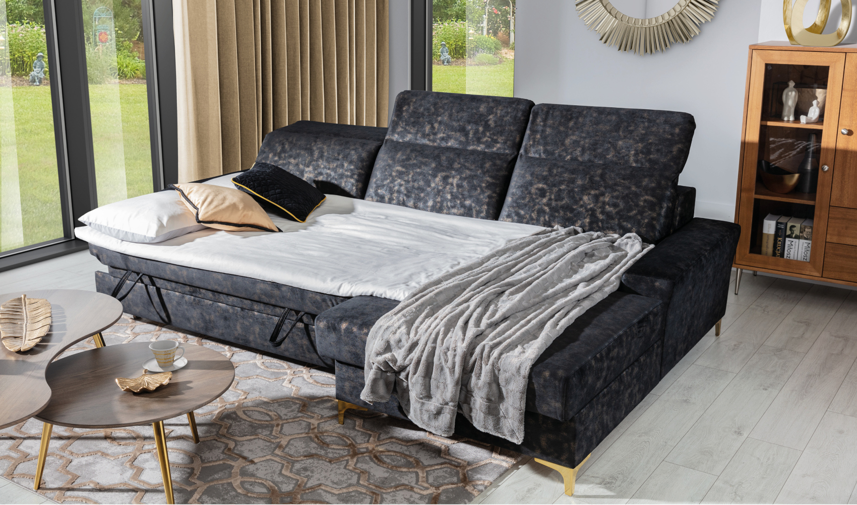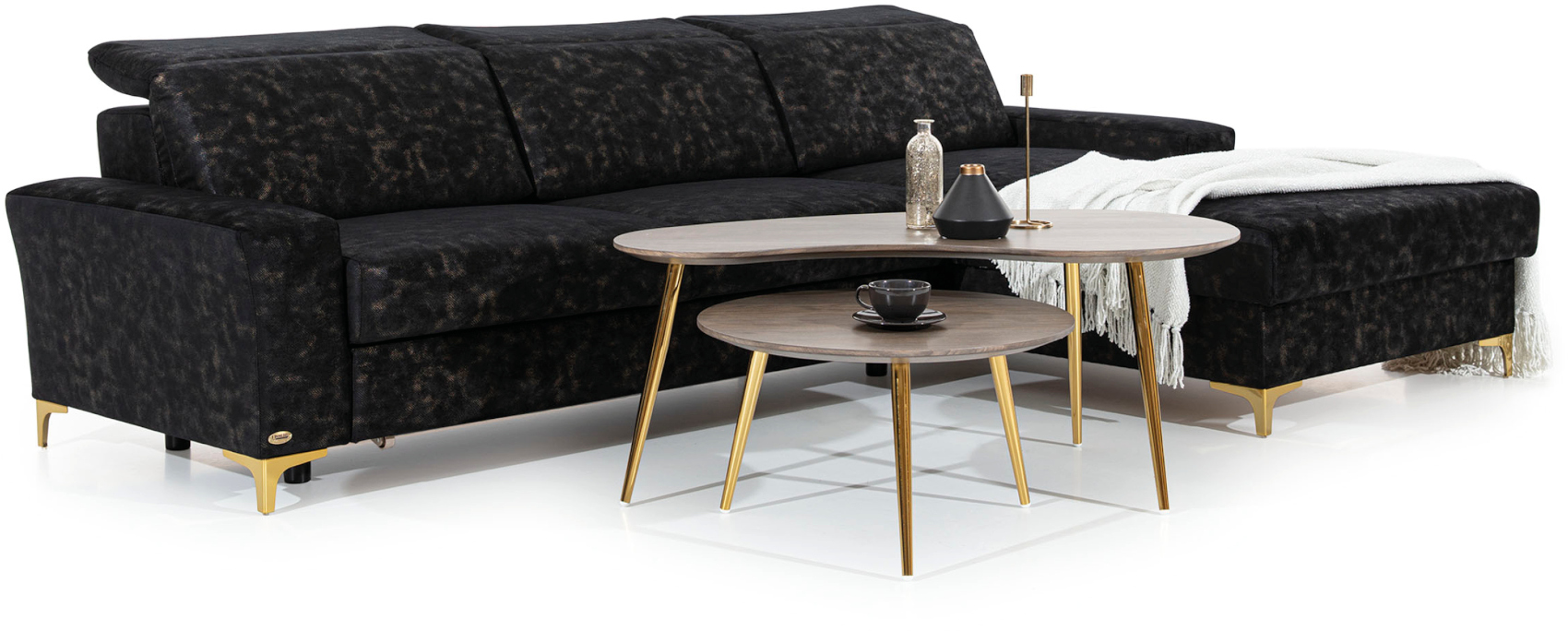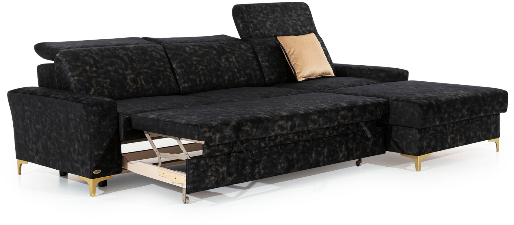 Rohová sedací souprava Diverso II s rozkladem a ÚP z bukového dřeva