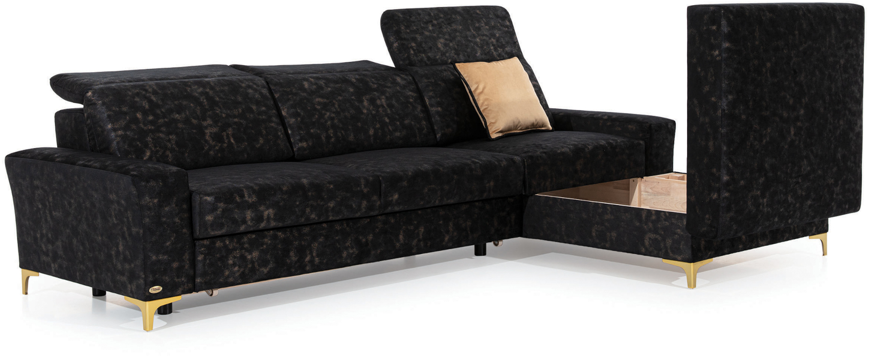 Rohová sedací souprava Diverso II vás zaujme svým elegantním designem. Součástí je prostor k uložení lůžkovin nebo přikrývky a rozkládací systém sloužící k občasnému přespání. Skelet je z tvrdého masivního dřeva, které je odolné a zaručí stabilitu sedačky.
