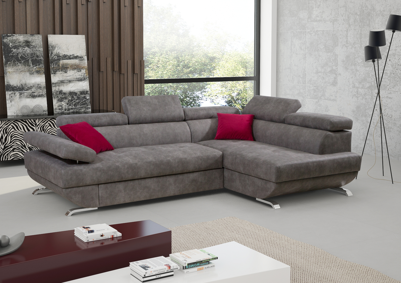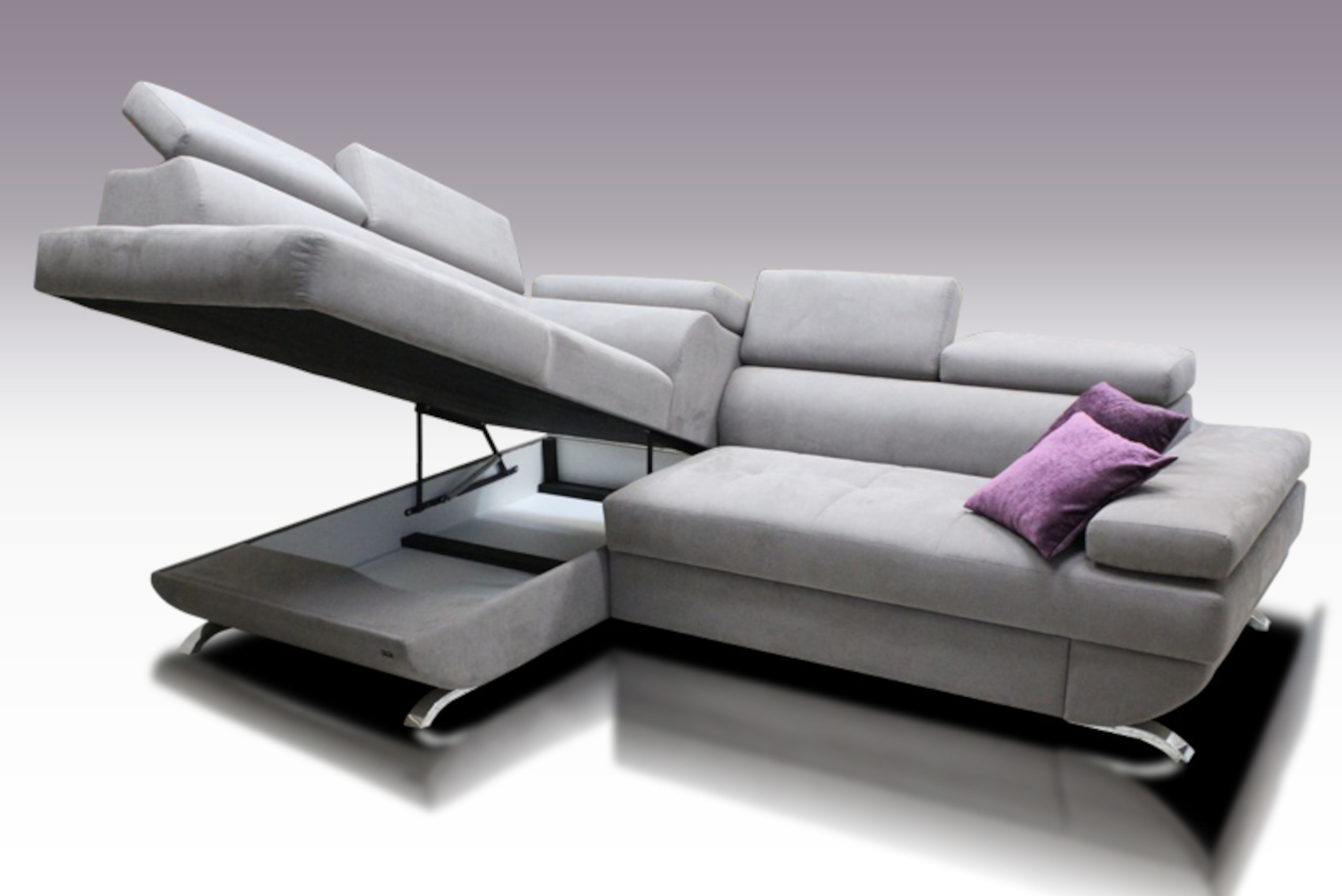 Součástí rohové sedací soupravy je rozkládací systémem ke každodennímu spánku a prostor k uložení ložního prádla, přikrývek a polštářů.
