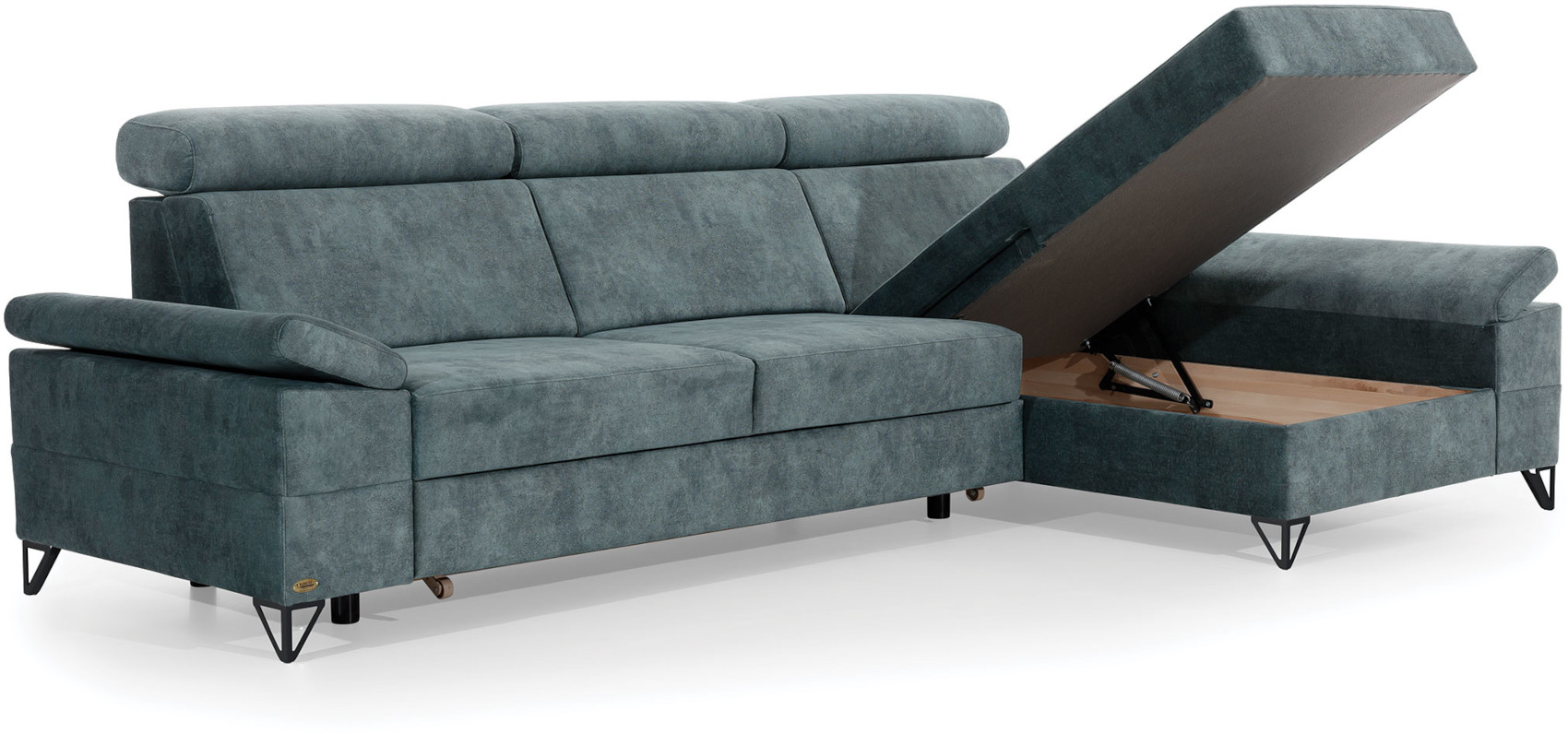 Rohová sedací souprava Lazaro s rozkladem a úložným prostorem vás zaujme svým moderním designem. Skelet sedačky je z tvrdého masivního dřeva, které je odolné a zaručí stabilitu sedačky.